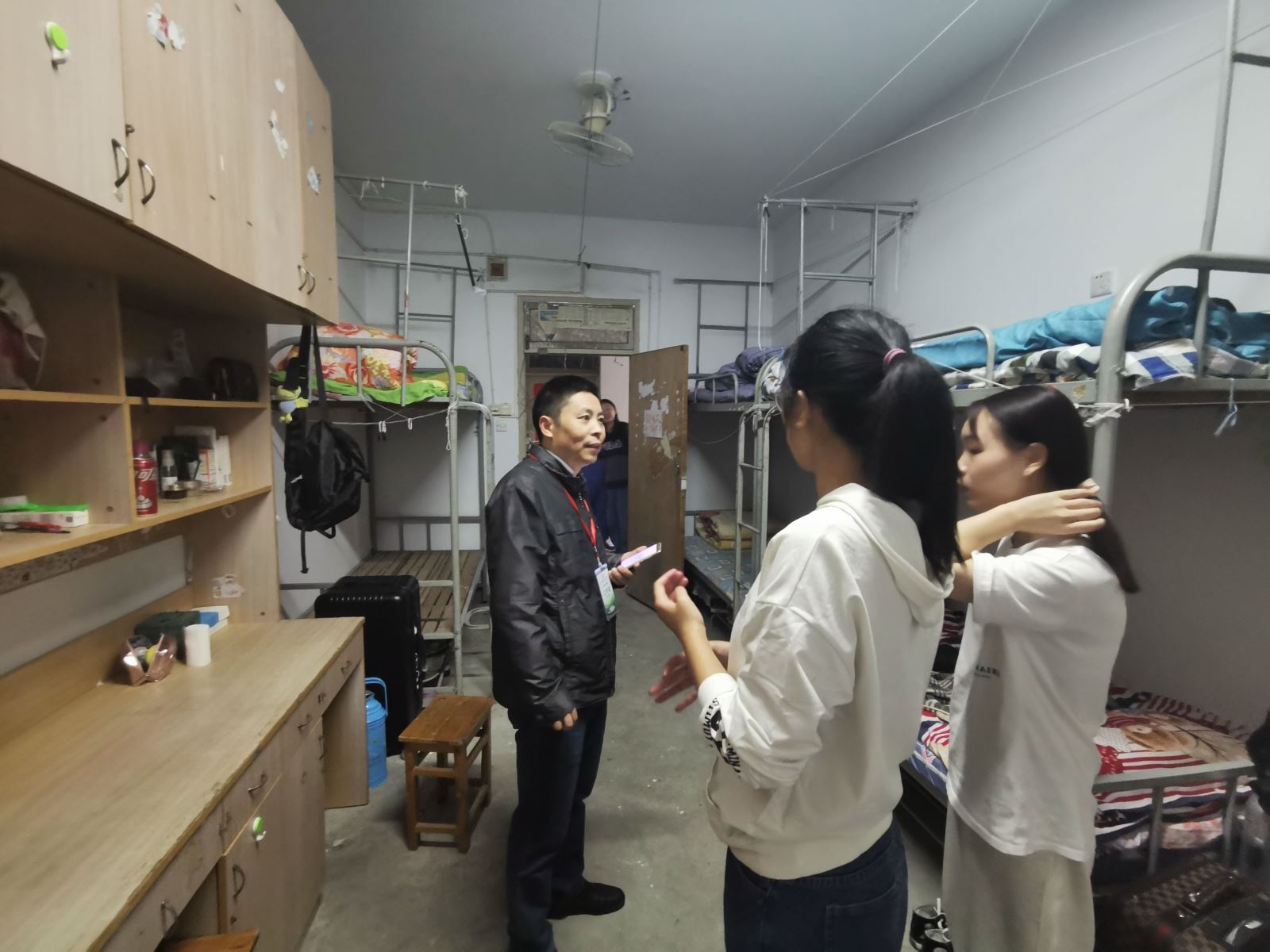 10月7日当晚,系党总支书记汪思曼带队,2020级新生辅导员陪同,走访了新生宿舍。他们倾听新生诉求、了解新生困难,仔细查看了寝室的各种设施是否完善,宿舍水电、空调能否正常使用。最后,叮嘱新生要加强疫情防控意识,注意保暖、预防感冒,培养良好的生活作息习惯,尽快融入大学生活,适应自己的新角色。