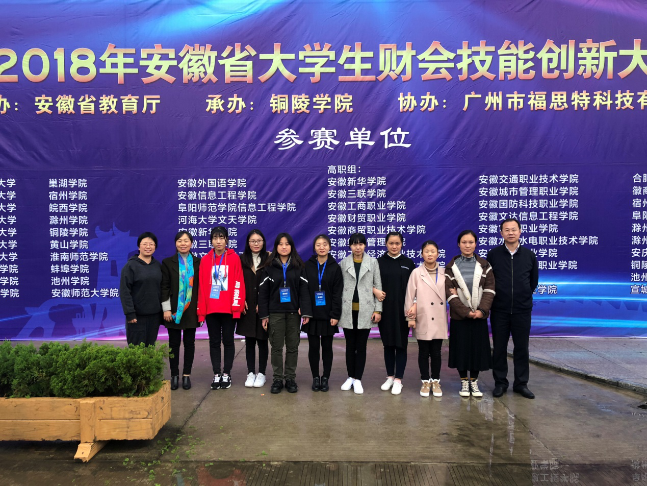 2018年11月18日,由安徽省教育厅主办,铜陵学院承办,广州福斯特科技有限公司协办的安徽省大学生财会技能创新大赛在铜陵学院隆重举行。本届大赛首先经过校级预赛遴选和推荐,最终由全省各高职院校的53支参赛队212名参赛选手参加比赛。米兰共两支代表队报名参赛,管理工程系韩素兰、谢婉丽和郑天佑老师担任两支参赛队的参赛指导。16会计1班选手黄进、侯曼、余梦雅和16会计3班选手金娟组成的参赛一队,荣获二等奖;16会计2班选手高远、牟丹和16会计3班选手张梦琴、邵玉杰组成的参赛二队荣获三等奖。