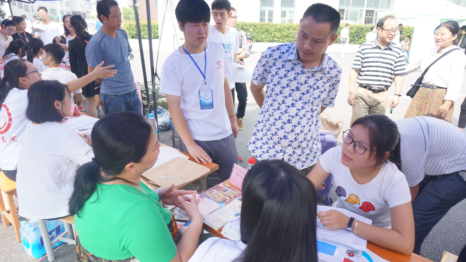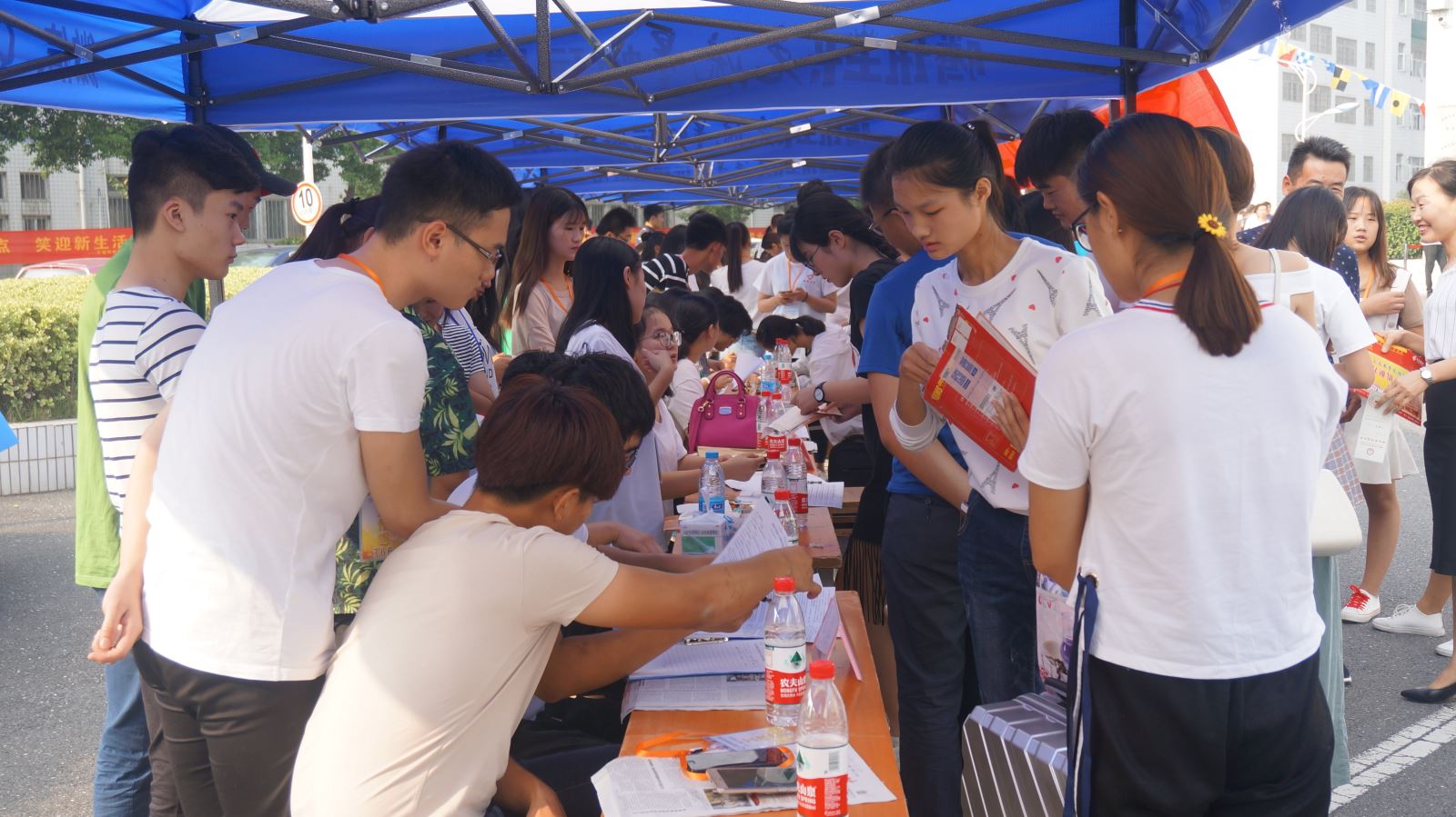 在新生报到时,系领导、各专职辅导员及新生班辅导员关切地与新生及家长交流,指导新生进行报到,使迎新现场温情满满。迎新现场,志愿者们不停地穿梭在校道上,热情细心地引导新生完成报到流程,帮助新生搬运行李,并积极介绍校园环境和大学生活经验。一位满头大汗却笑容灿烂的志愿者说:“身为新生的学长有义务为新生做好相应的指导帮助,看到每一位新生能够顺利报到,心里感到非常开心。”带孩子前来报到的冯先生说:“千里迢迢带孩子来学校里报到,一到学校就看到热心的志愿者上来帮忙提行李,报到的时候还一遍遍地给我们讲解报到程序,天气这么炎热,看到他们汗流浃背的,心里面还是挺感动的,孩子能在这么好的环境里学习生活,心里也比较放心。”