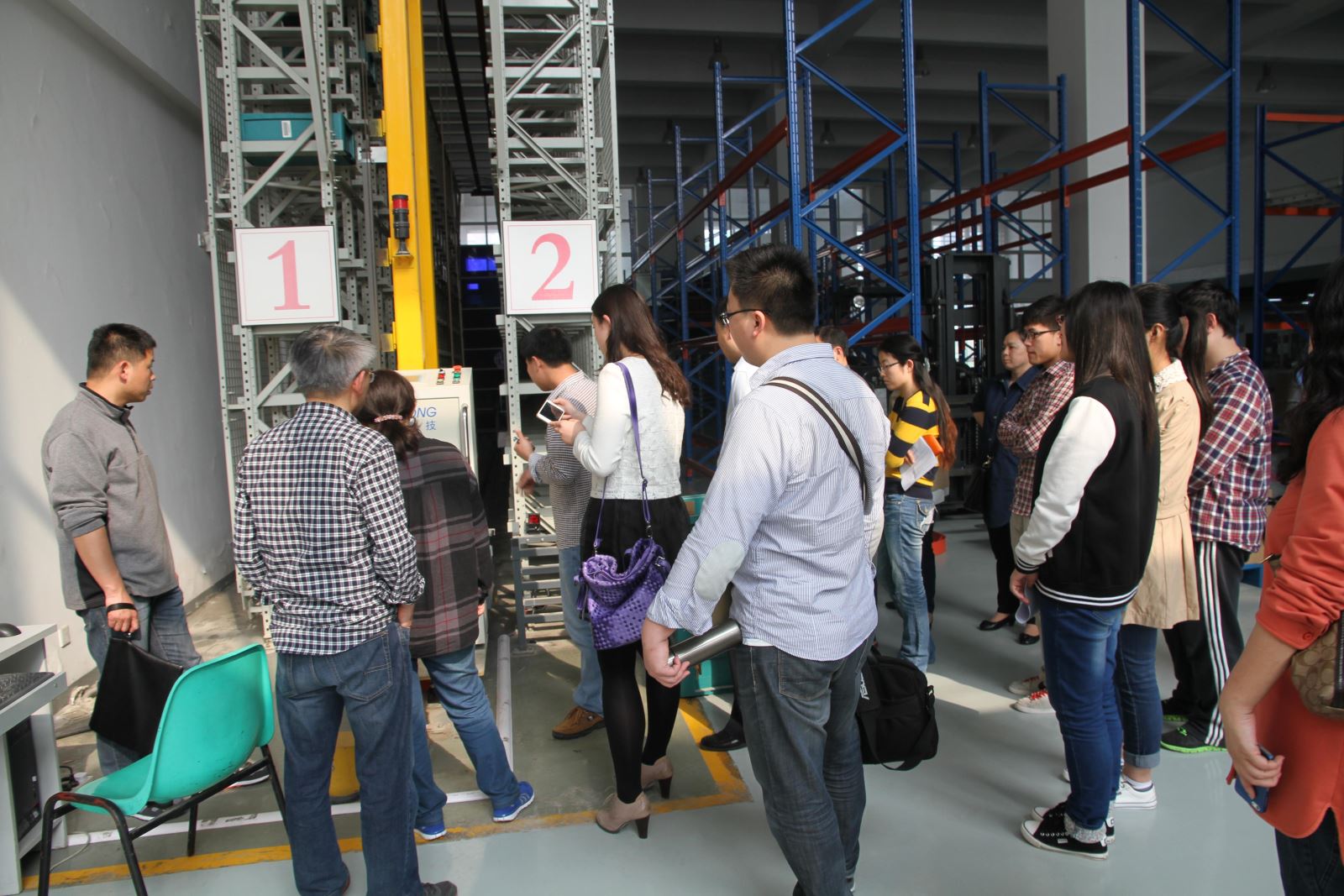 项目工程师首先依次为各位老师介绍了本次改建的几大物流设施模块。首先是在自动化立体仓库库区,工程师向大家就自动立体库的软硬件操作做了详尽的说明及演示。本次改建极大的优化了之前操作系统与硬件的灵敏度,使得货物入库的整个流程更加平顺且高效。