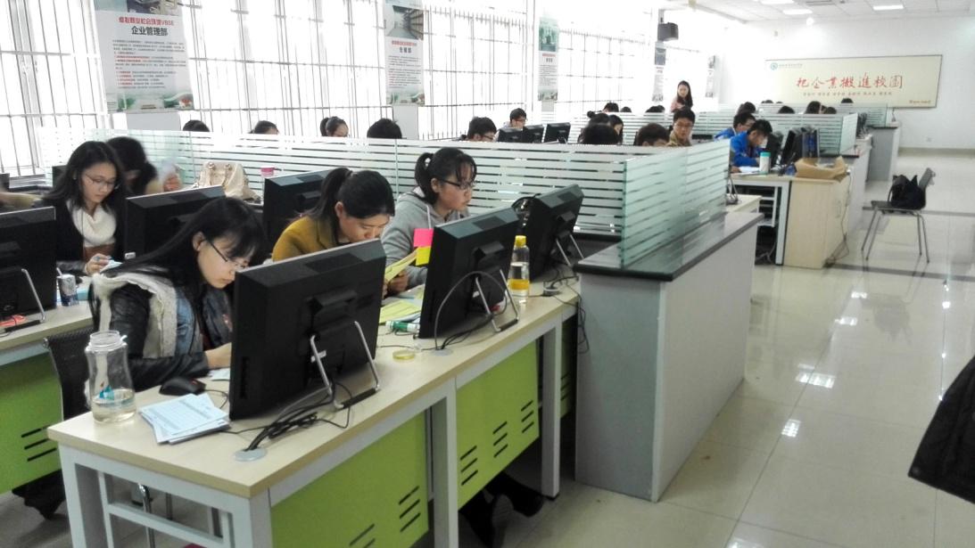 在徽商职业学院,程世平等老师参观了会计系的多媒体实训室和手工模拟实训室。随后,两校老师在会计系会议室召开了会计专业办学情况交流会。会上,周永清主任和程世平主任分别介绍了两校会计专业的基本办学情况。然后,周永清主任着重介绍了徽商职业学院会计系的学科建设情况,特别是会计专业实验实训课的开展、会计实训室建设等情况。最后,双方老师就会计专业的课程设置与会计技能大赛、会计考证的衔接等问题做了深度交流。
