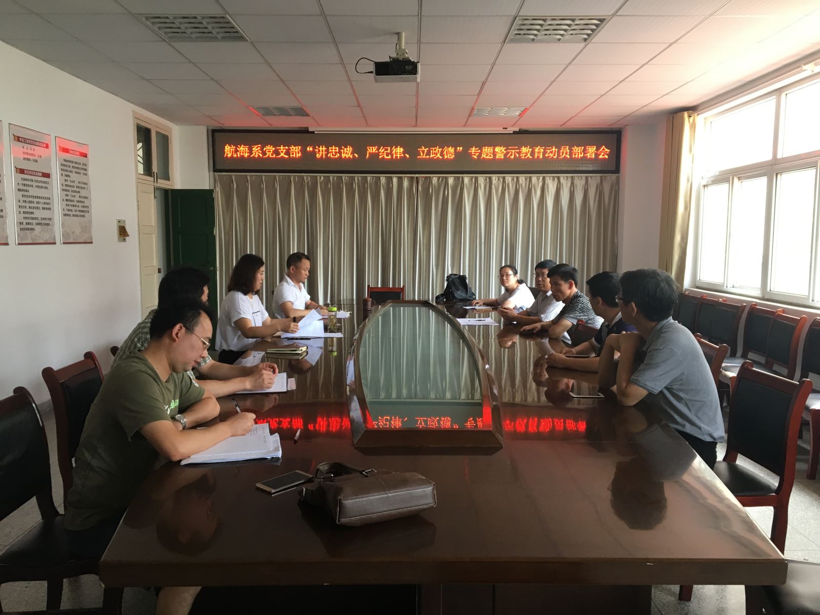 7日9日上午,航海系党支部召开“讲忠诚、严纪律、立政德”专题警示教育动员部署会议,全体党员参加会议,党支部书记朱蓉主持会议。