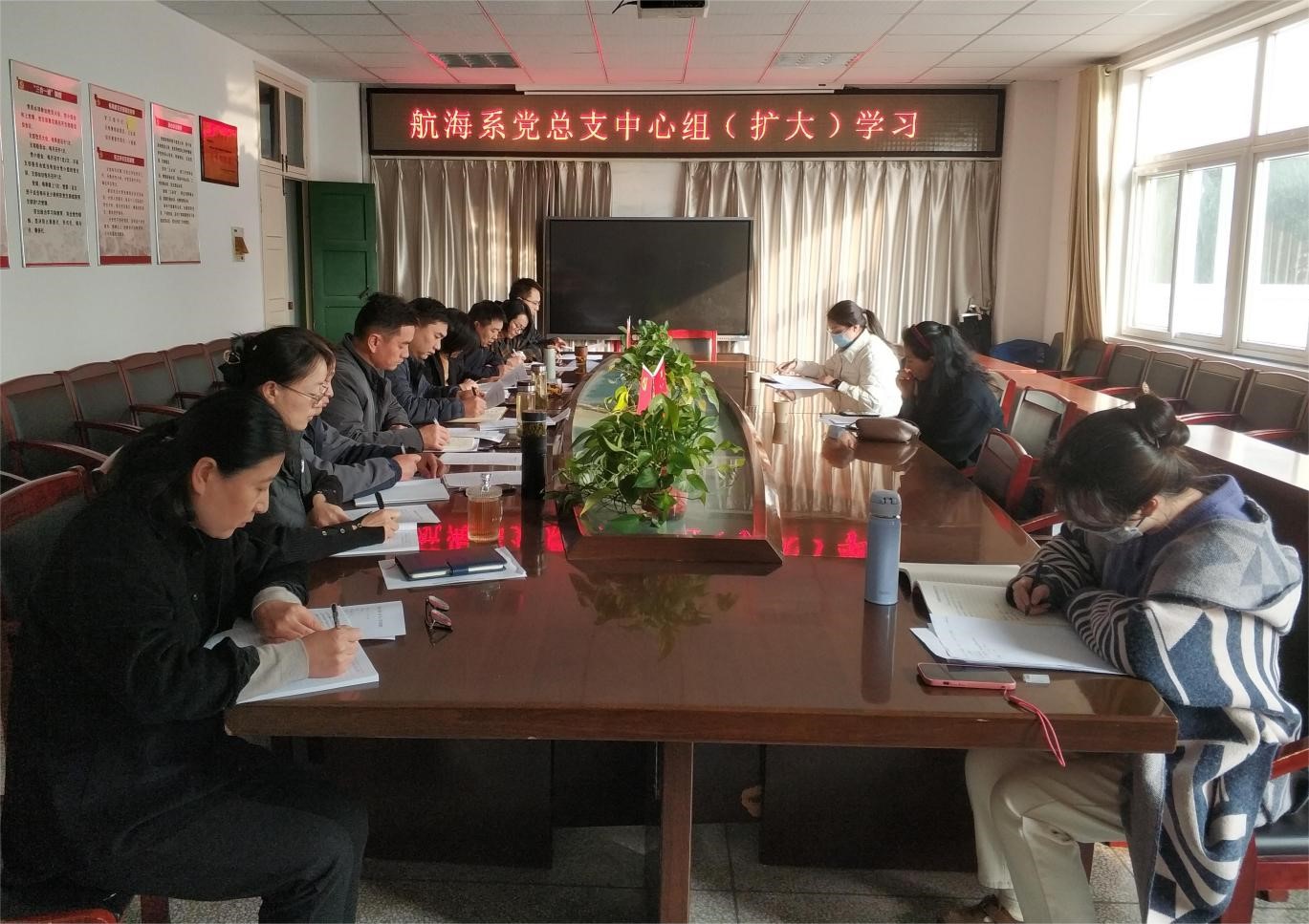 2023年11月30日下午,航海系党总支在系会议室召开党总支中心组(扩大)第一次学习会,会议由党总支书记刘超主持,院纪委、组织人事处人员到会巡听。