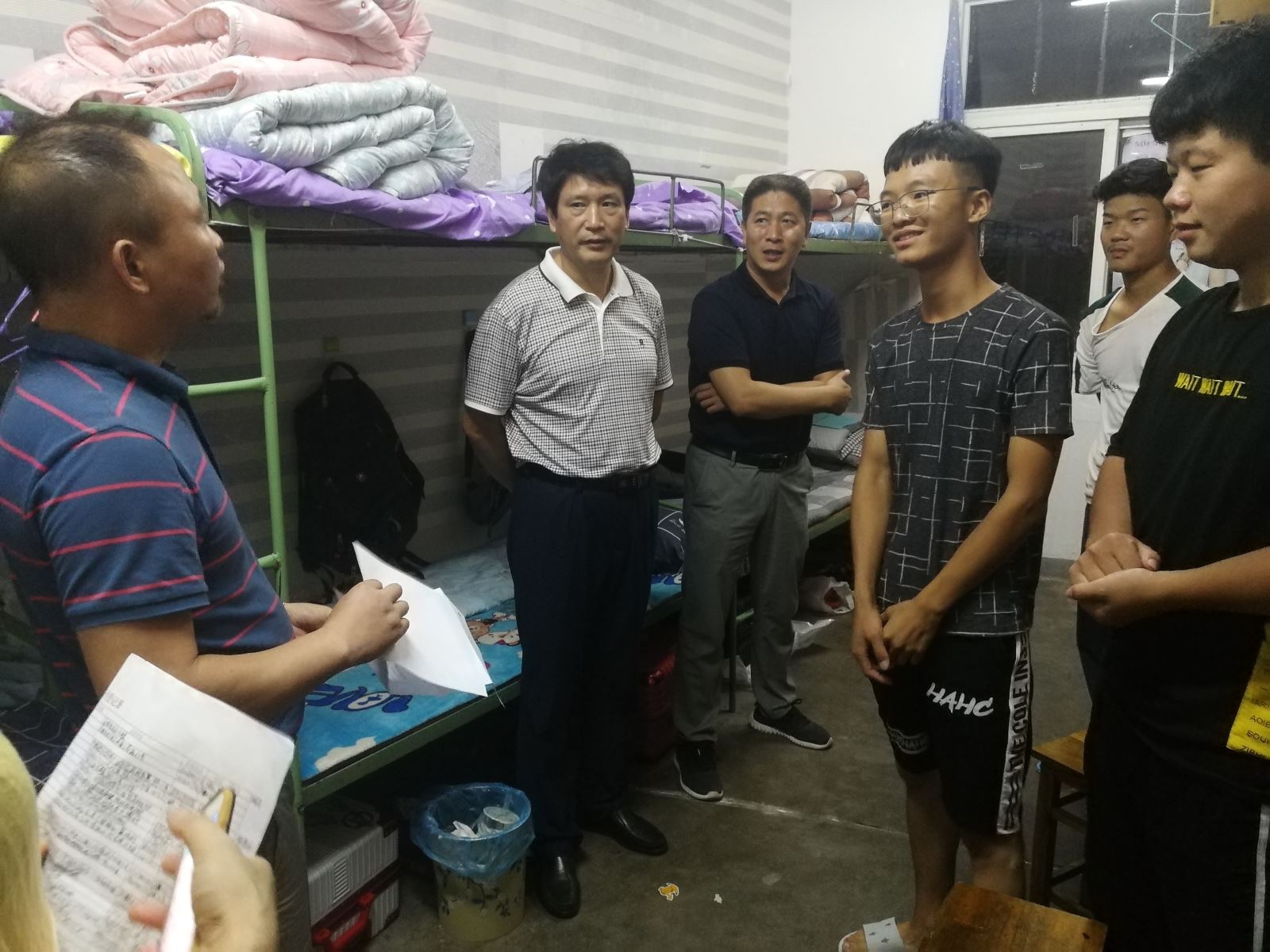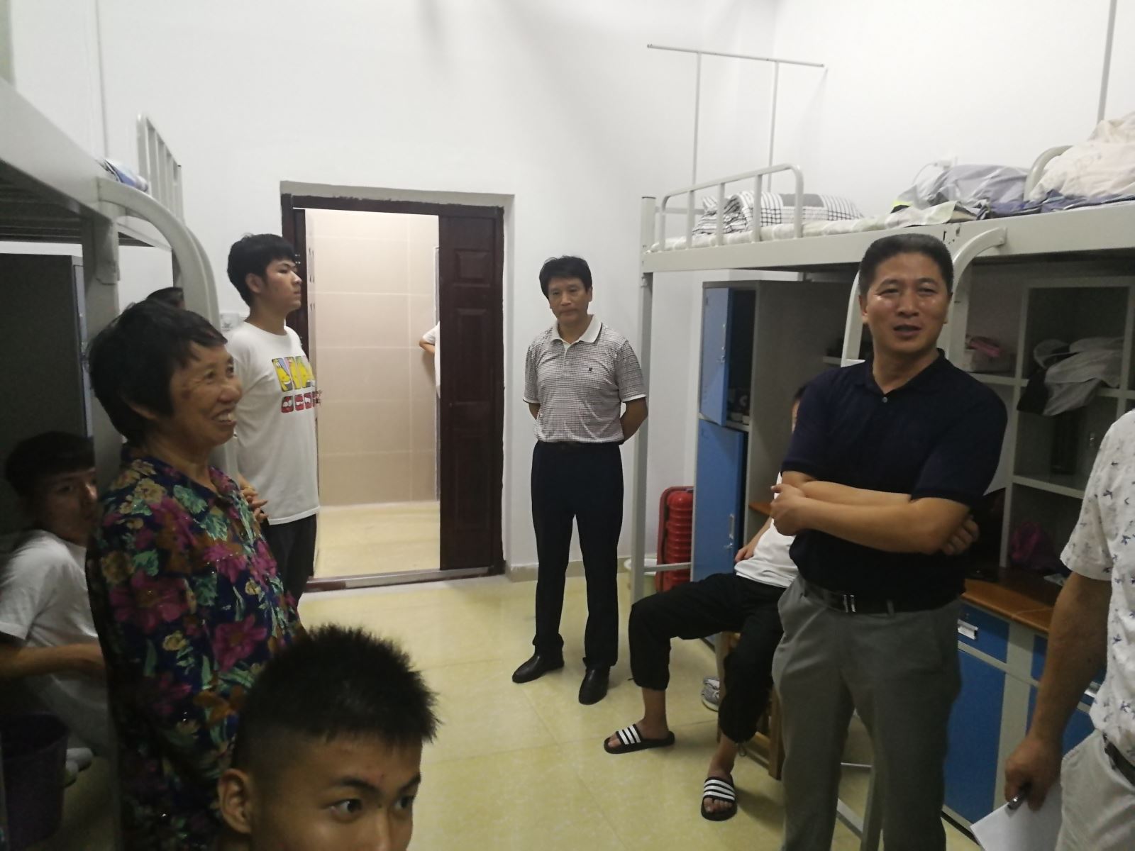 9月14日傍晚, 航海系主任王东、党支部书记陶权、学管老师及2019级新生班辅导员,为使新生能更快地融入大学生活,一同走访了我系南北区新生宿舍。