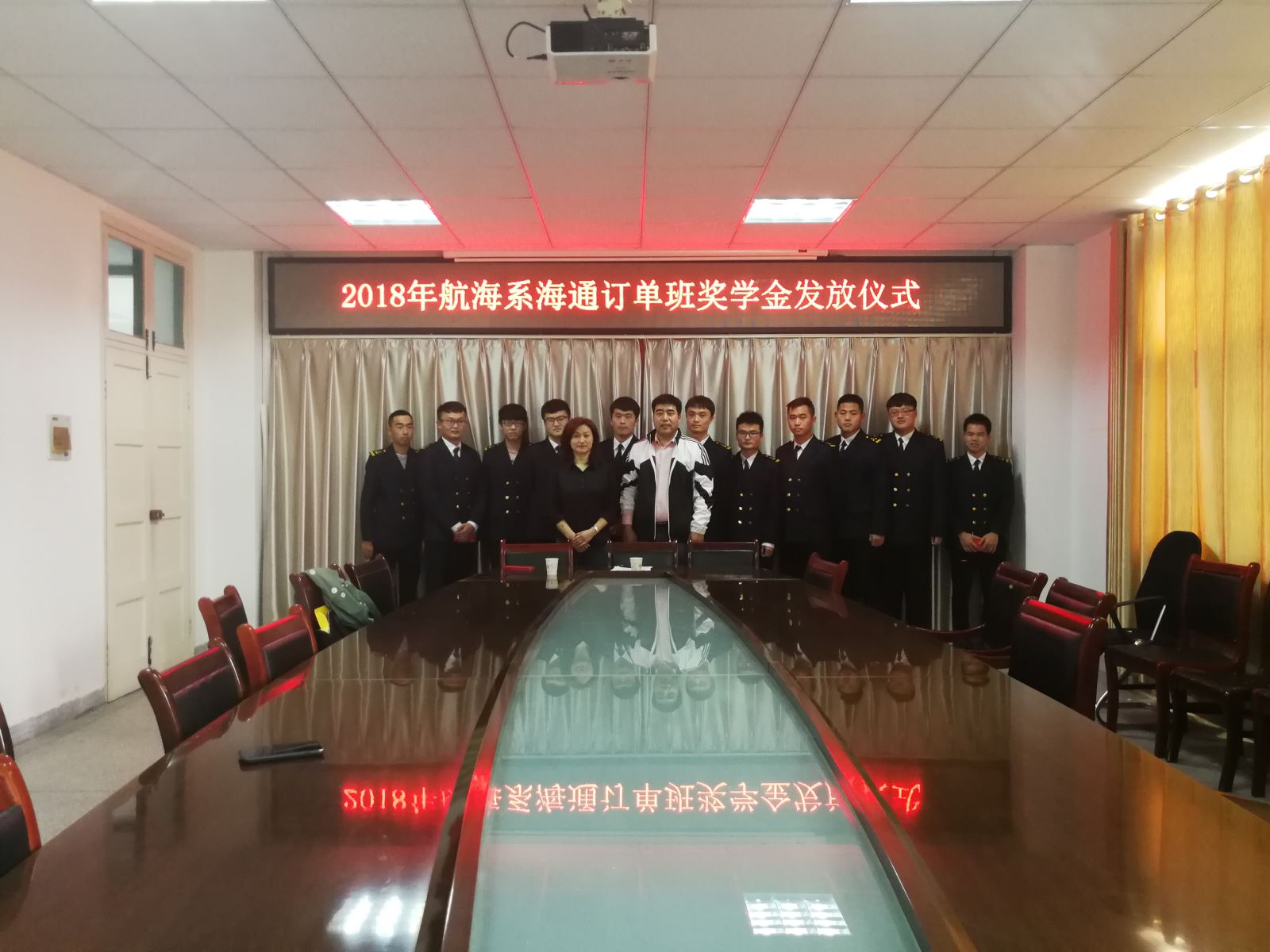 2018年10月24日,航海系举行了2018航海系“海通订单班奖学金发放仪式”和“中船订单班奖学金发放仪式”,参加本次会议的有江苏海洋船舶管理有限公司轮机长张保安、人力资源部经理徐玉萍、上海中船海员管理有限公司副总经理陈华建,以及订单班全体同学。