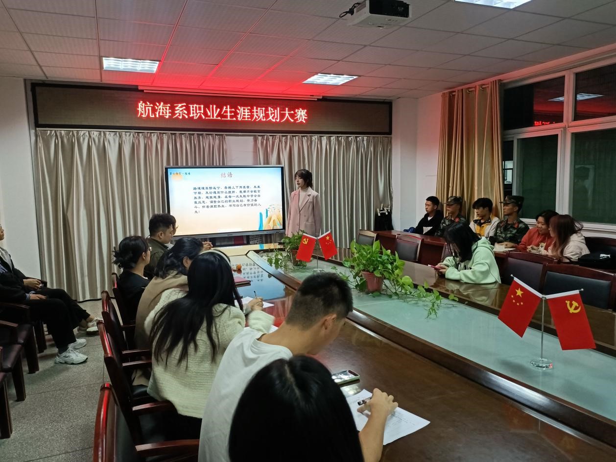 为深入实施高校毕业生就业创业促进行动,增强大学生生涯规划意识,引导学生树立正确的成才观、就业观,提高系生涯规划与就业指导工作水平,促进毕业生更高质量更充分就业,11月7日,航海系举办了2023年职业生涯规划大赛,系学生管理老师担任本次大赛评委。