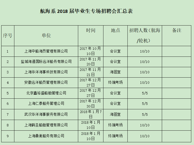 航海系2018届专场招聘会汇总表