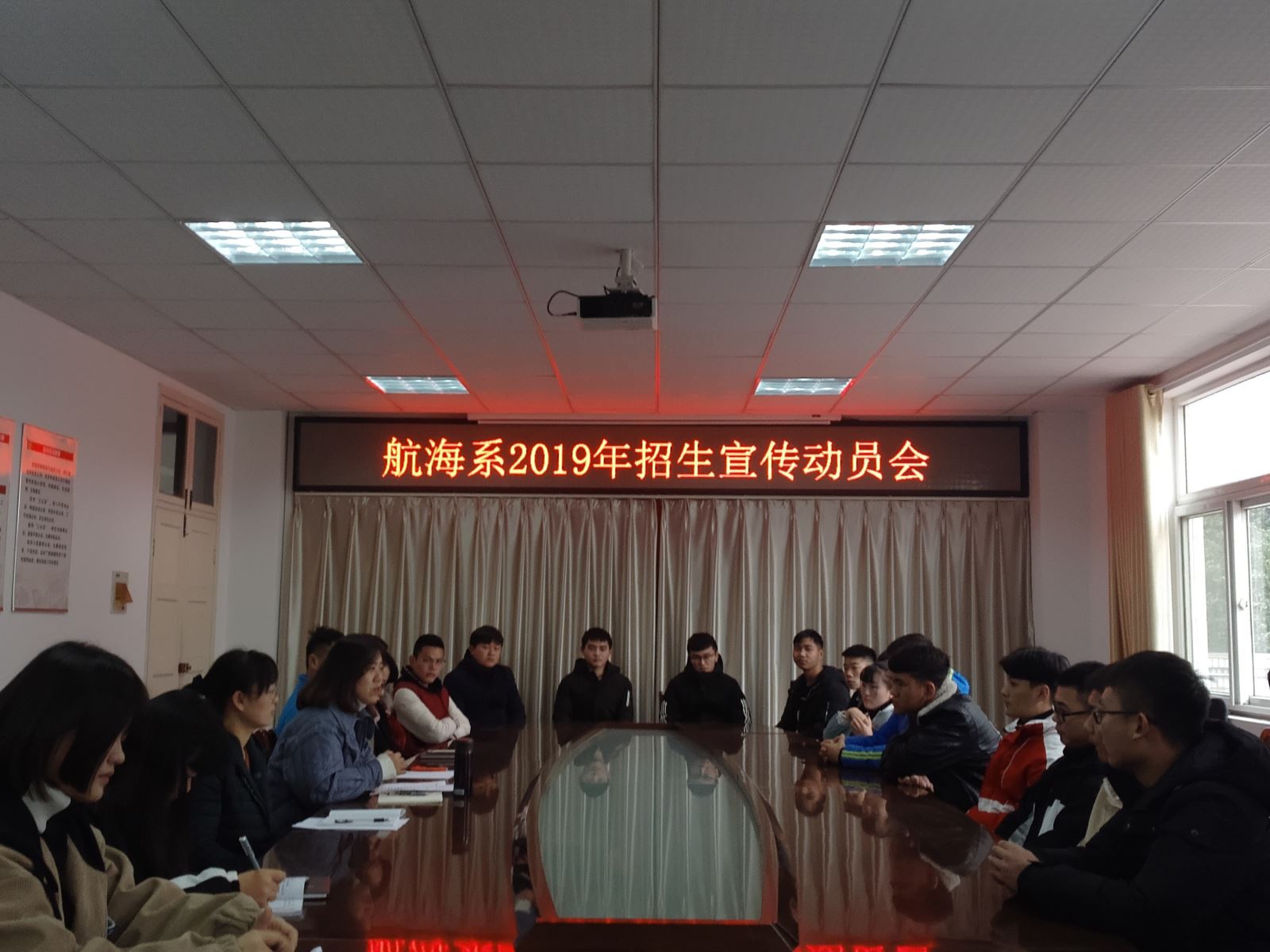 为积极推进航海系招生宣传工作,2019年1月2日下午,航海系召开2019年招生动员大会。党支部书记朱蓉、学管老师卜丽媛、刘婷,学生会主要干部及17、18级学生代表参加此次会议。会议由系党支部书记朱蓉主持。