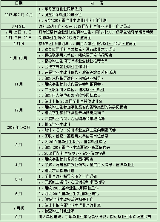 航海系2018届毕业生就业创业工作计划安排表