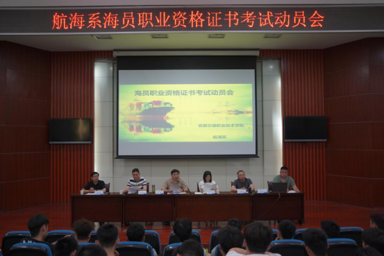 为提升航海系22、23级学生备考海事局三副/三管适任证书积极性,引导学生优化学习方法,提高考证通过率,5月13日晚,航海系召开22、23级海员职业资格证书考试动员大会。航海系党总支书记、主任刘超、航海系党总支副书记肖虹、航海系副主任王在高,梁金华、何德荣、张剑鸣等大证学科任课老师和航海系22、23级300多名同学参加大会。会议由刘超主持。