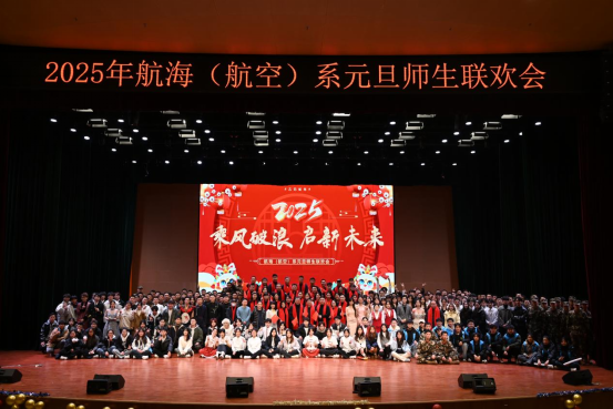 此次元旦联欢会,不仅是一场精彩纷呈的艺术盛宴,更是航海(航空)系师生回顾过去、展望未来、团结奋进的盛会。它充分展示了全系师生在过去一年里的努力与收获,展现了积极向上、勇于拼搏的精神风貌,也为新的一年开启了充满希望与挑战的新篇章。在新的征程中,航海(航空)系全体师生将紧紧围绕“乘风破浪,启新未来”的主题,以更加饱满的热情、更加坚定的信念和更加扎实的行动,扬帆起航,逐梦海天,用智慧和汗水书写航海(航空)事业的崭新辉煌,向着更加广阔的未来奋勇前行!(航海航空系 卢雅静、王晨)
