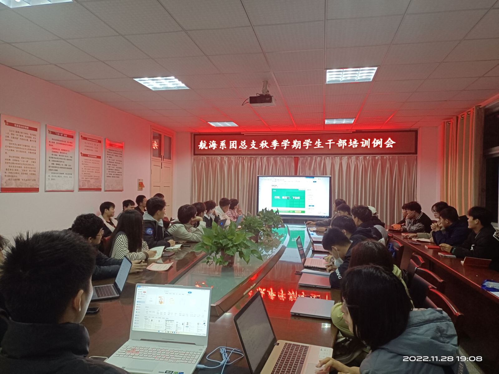 为进一步深化学生会组织改革,强化我系学生会学生干部的责任意识,提高同学们的服务水平和综合素质,以实际行动贯彻党的二十大精神,11月27日至12月1日,航海系团总支2022年秋季学期学生干部培训会于系会议室召开,系团总支负责人王晨主持会议,学生会干部、各班团干参加会议。