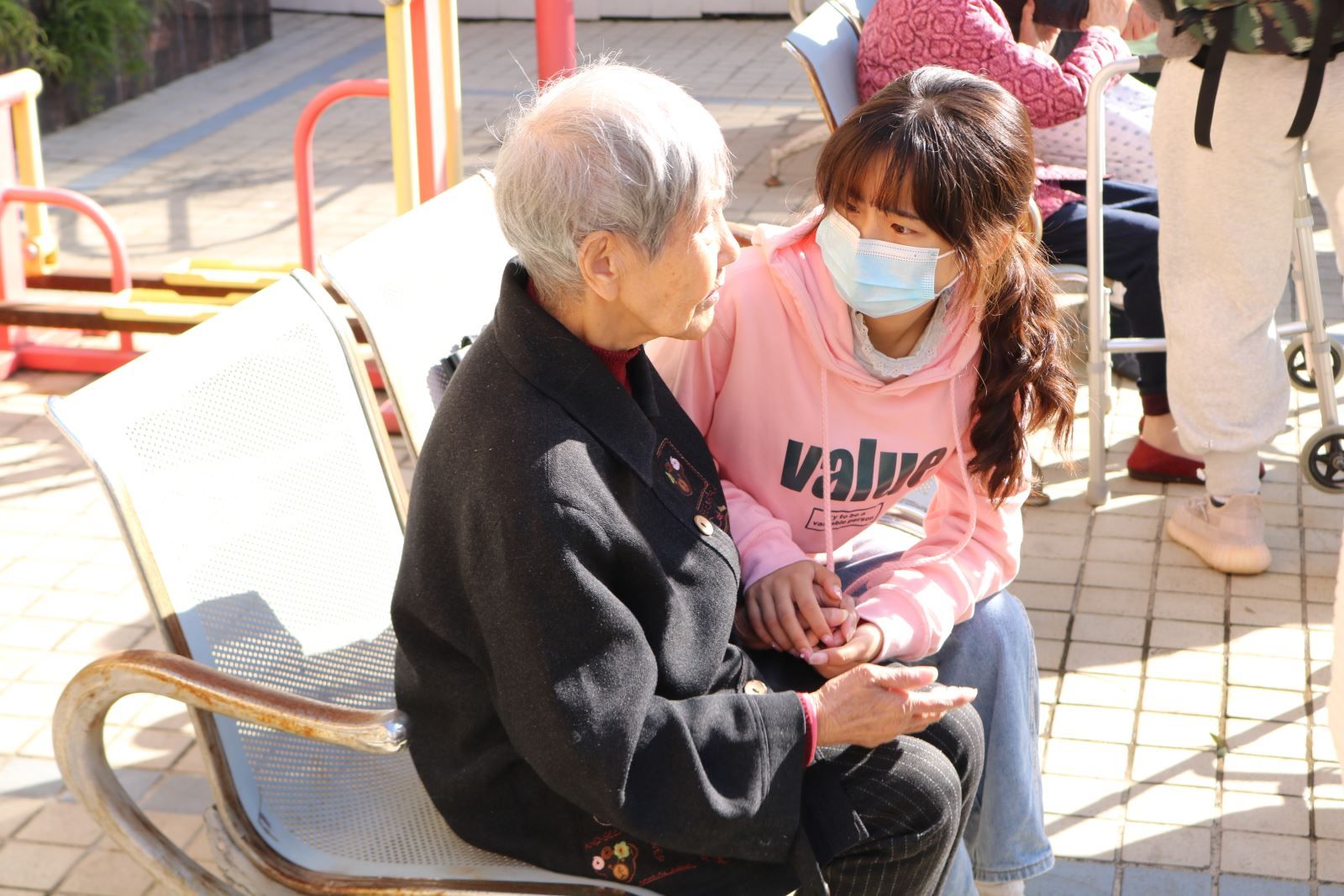 随后,同学们搀扶老人、推着轮椅将老人们带到院子里晒太阳,并将自己的外套给他们盖上。在院子里,同学们主动向老人们表演节目,无论是活泼帅气的街舞,还是散发着青春活力的吉他,亦或是奏响青春的萨克斯,都给在场的老人们带来了一阵阵欢声笑语。听到老人们发自内心由衷的感谢,同学们心头暖暖的,一种久违的温馨和家人的关怀围绕在老人的心中。