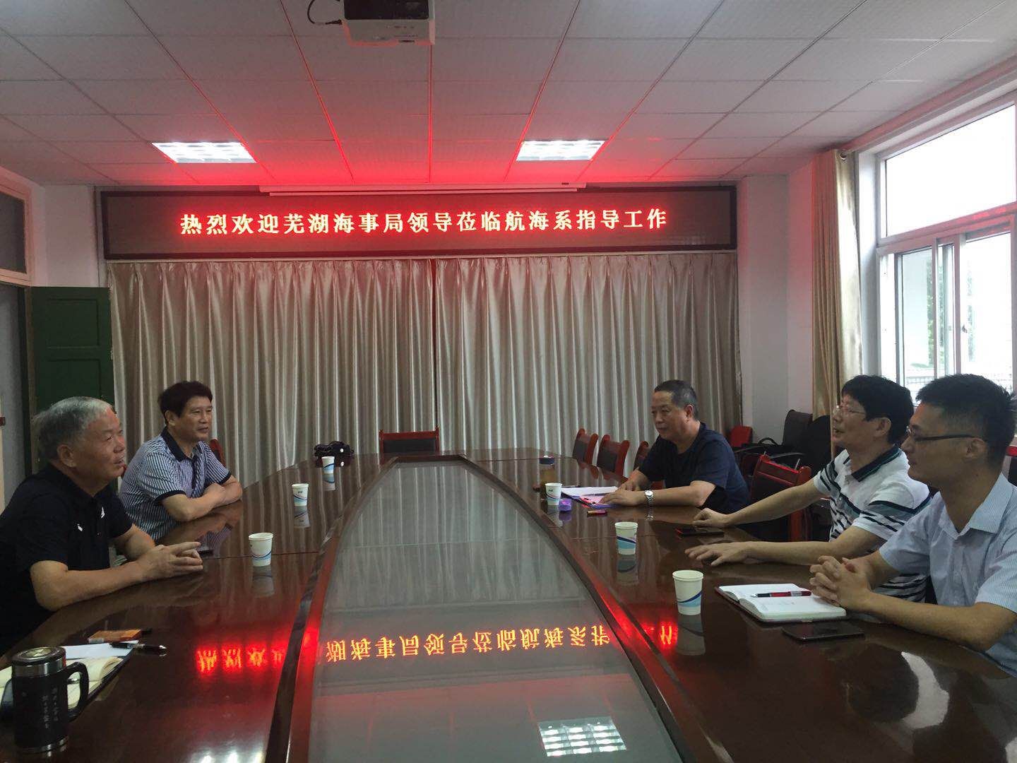 7月24日,芜湖海事局局长李应武、船员处处长周航一行来到学院航海系检查指导船员培训工作,院长张国栋、航海系支部书记陶权及相关人员参加了会议。
