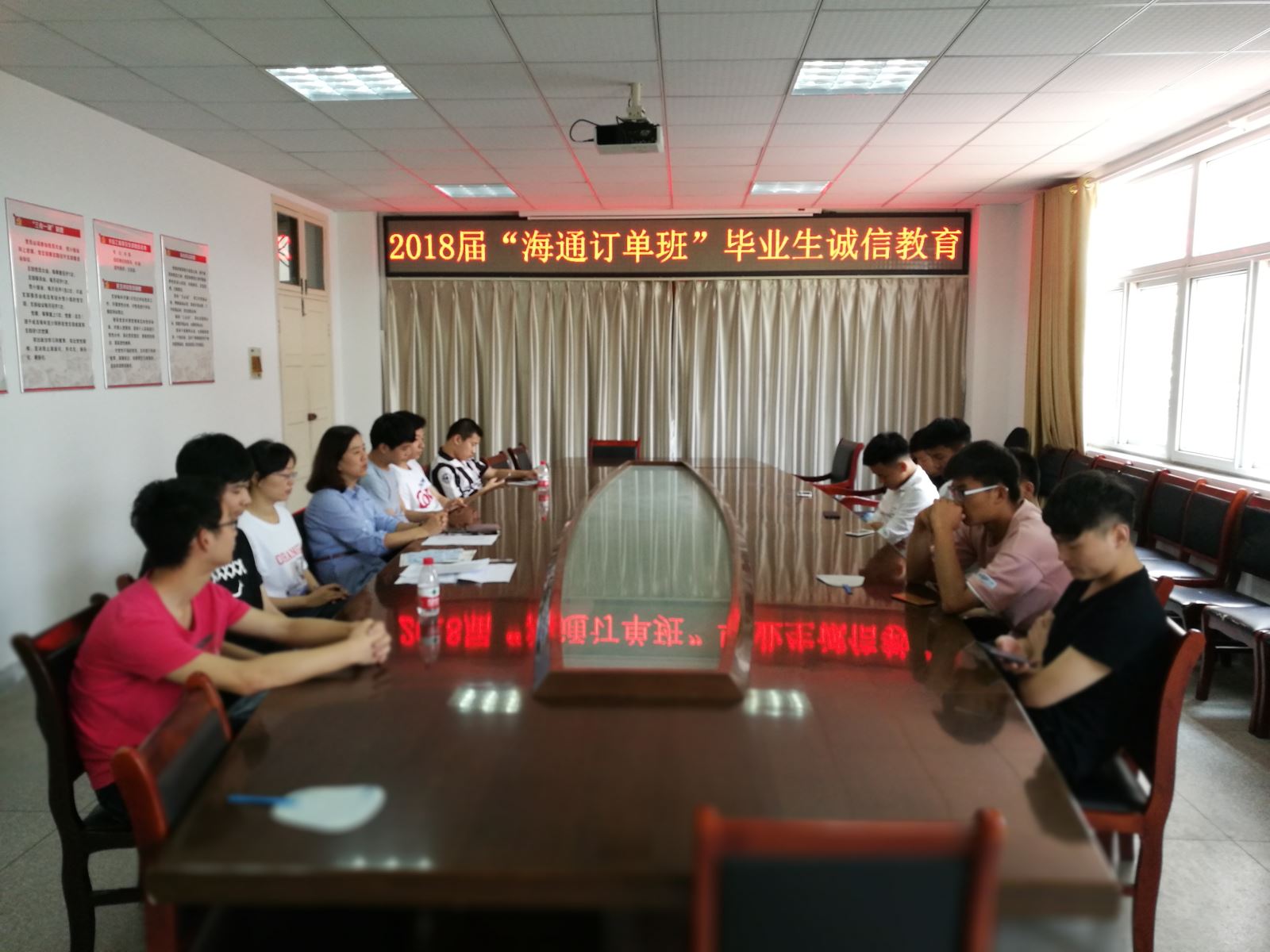 系书记朱蓉给15级海通订单班的学生进行了诚信教育。朱书记表示,15级海通订单班是我系首届订单班,对于这些学生的就业,学校和企业尊重学生的个人选择。这个班级为我们日后的订单班工作提供了一个努力的方向。