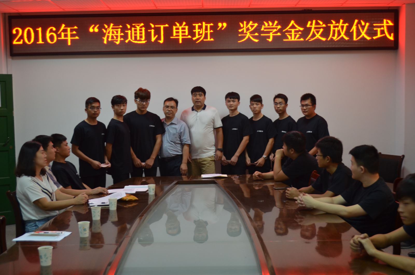 9月14日中午,盐城海通国际远洋船员管理公司“海通订单班”奖学金仪式颁发在系会议室举行。盐城海通国际远洋船务有限公司工会主席李开军船长、人力资源部张保安经理、办公室李居成主任、系主任雷长森、系党支部书记、副主任朱蓉及订单班学生参加了会议。颁奖仪式由朱蓉书记主持。