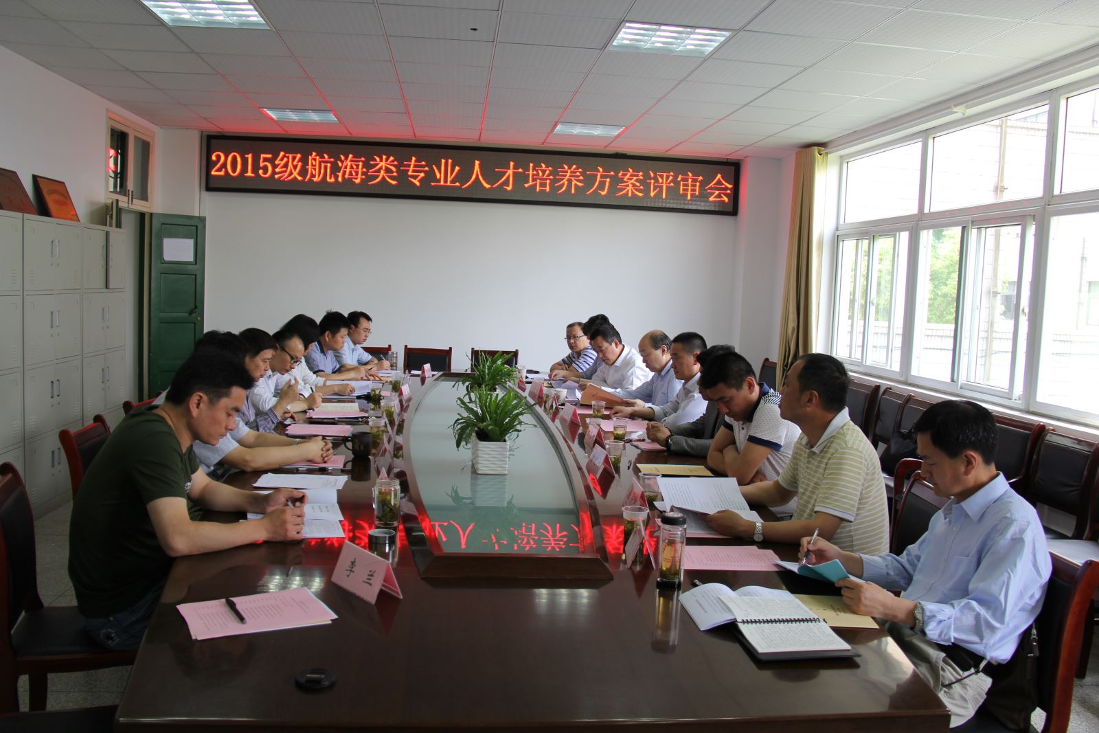 校外评审组成员:安徽海运有限责任公司曹建平经理,安徽省地方海事局皖江船舶检验局周文生局长,安徽省地方海事局淮河船舶检验局余学锋书记,合肥市地方海事局黄宝瑞副局长,安徽省地方海事局船员处董帮友副处长,安徽省地方海事局江淮船舶检验科陈刚科长。
