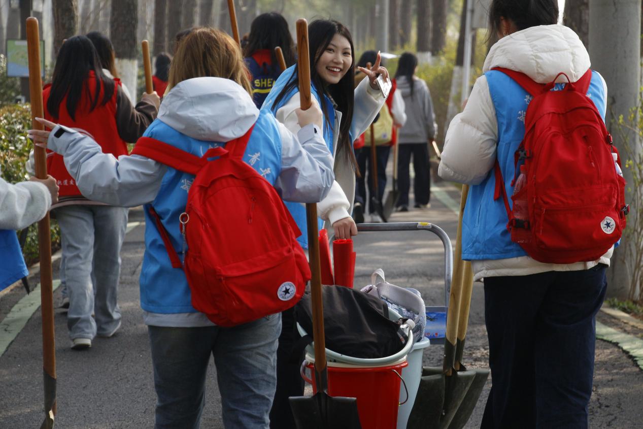 活动当日天气晴好,滨湖湿地公园阳光灿烂,两系学子一到现场便主动投身搬运树苗和植树工具工作,他们步伐坚定有力,眼神中闪烁着对此次活动的憧憬与决心。