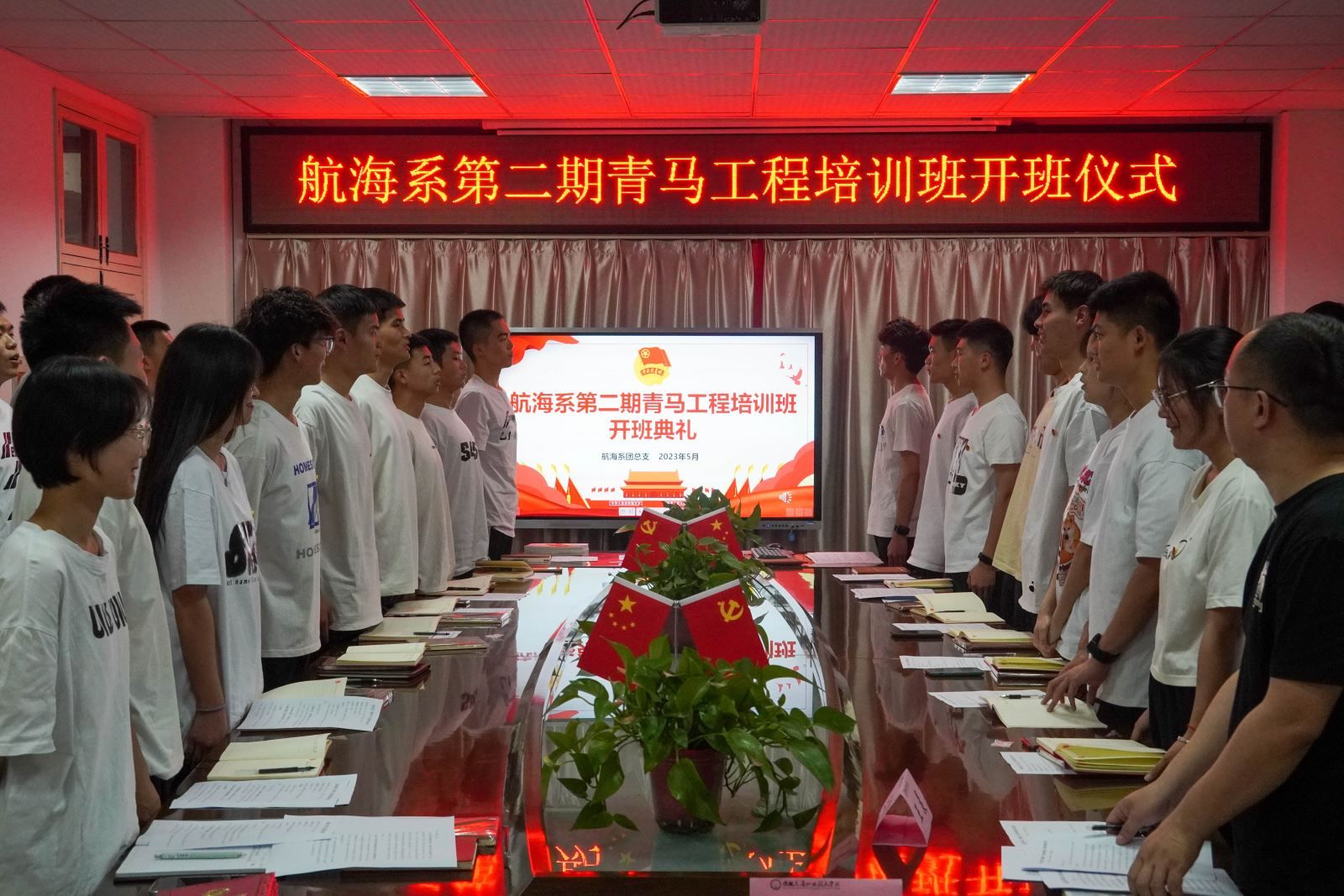 开班仪式在奏唱中华人民共和国国歌中拉开序幕。王晨介绍了第二期青马工程培训班开班背景、培训计划和培训要求。要求全体学员充分认识“青马工程”培训的重要意义,增强学习的政治自觉、思想自觉、行动自觉;聚焦学院及航海系改革发展机遇,围绕学校“两高一本”发展目标、航海系青年素养提升工程等重大安排,找准个人发展与学校、与社会发展的结合点,把学习成果转化为青春建功、高质量提升自我的实践动力,肩负起党的事业薪火相传接力者的重任。学员代表、培训班班长杨敬文同学发言。她表示,全体学员将坚定理想信念,做马克思主义的坚定拥护者;坚持知行合一,做马克思主义的实践者;争当先锋模范,做马克思主义的积极传播者。以青春之我,让青春之花在实现中华民族伟大复兴的新征程上绚丽绽放。