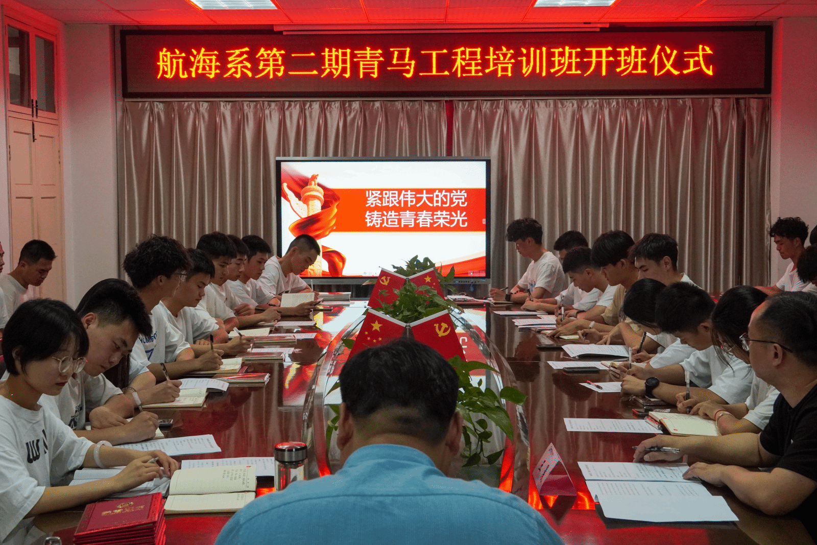 为深入学习宣传贯彻习近平新时代中国特色社会主义思想,践行党的二十大精神,进一步加强对航海系学生骨干的理论武装和实践培养,着力培育一批信仰坚定、能力突出、素质优良、作风过硬的青年马克思主义者,5月15日,航海系第二期“青马工程”培训班开班仪式暨开班第一课顺利举行。系党支部副书记、主任刘超、团总支负责人王晨及培训班全体学员参加开班仪式。