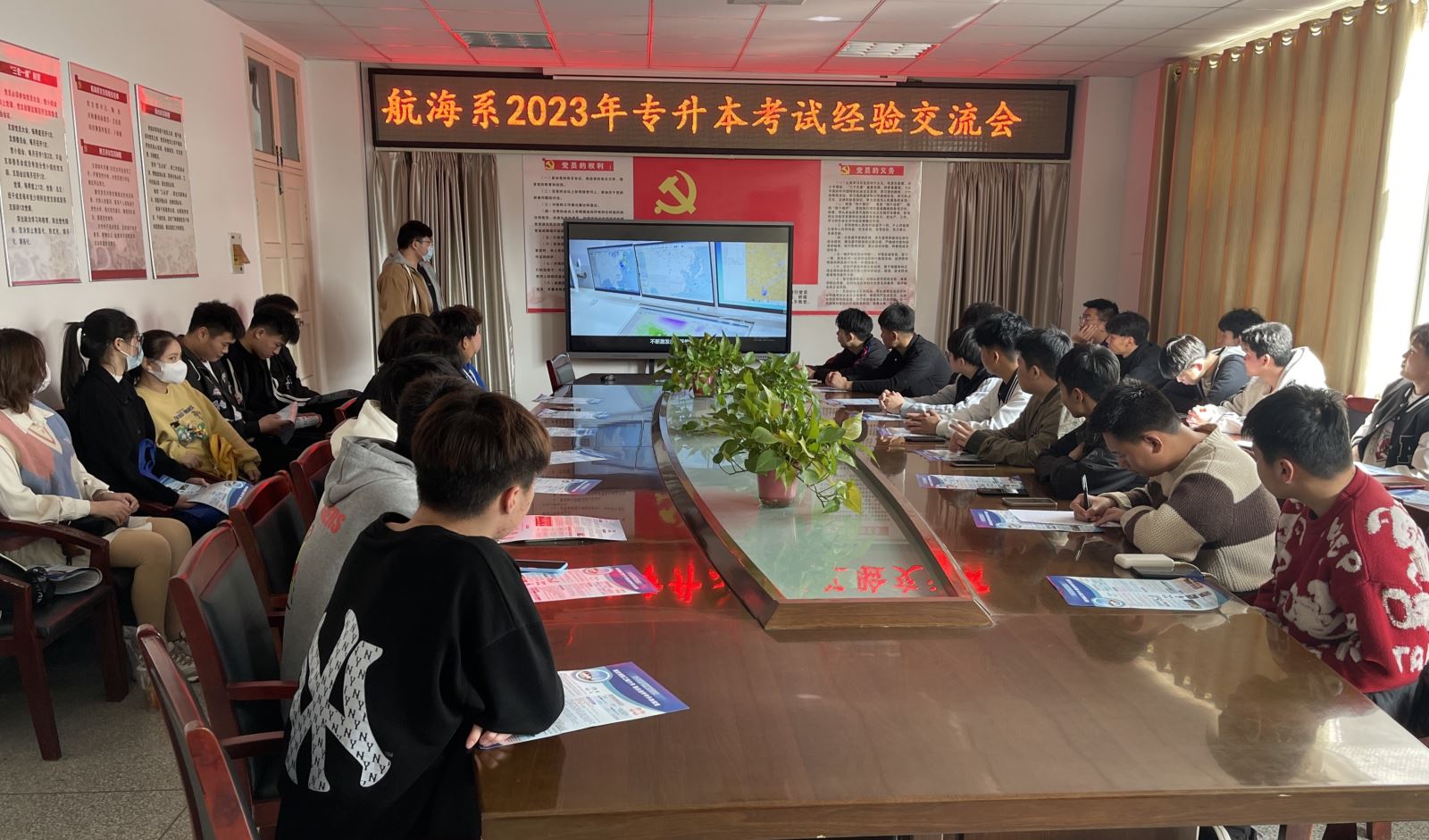 为增进我系学生对专升本考试的认识,明确升学目标,掌握备考技巧,提高学习能力,3月5日,航海系团总支在会议室召开了2023年专升本考试经验分享交流会。交流会由系学生会主席王其文主持,我系2022届成功专升本同学现场分享,意向备考专升本的30余名同学参加此次分享会。