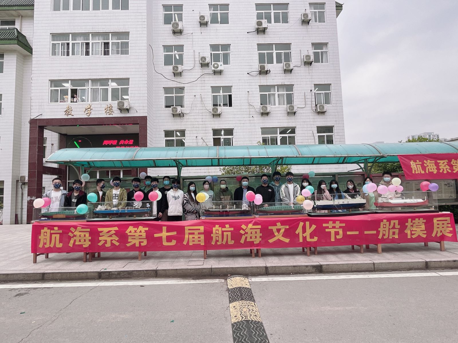 5月初,航海系举办了航海船模展活动,将船模、锚、舵轮等搬到教学楼前让全校师生共同欣赏。