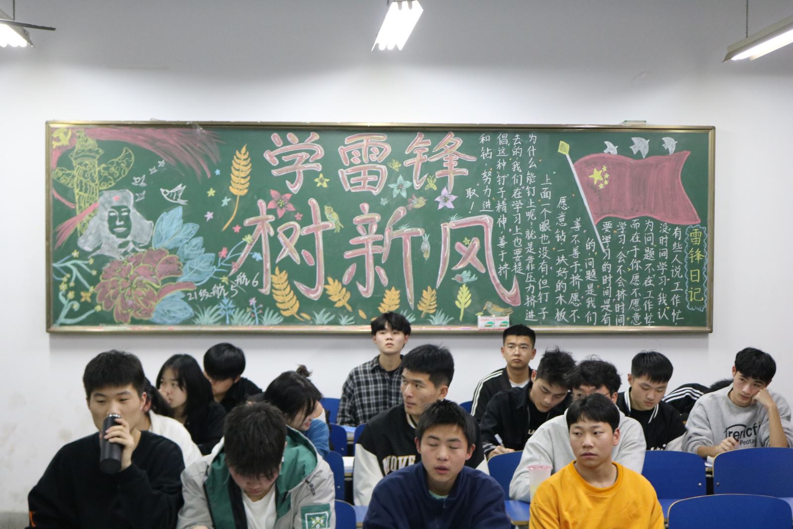 3月中旬,航海系各团支部开展了“向雷锋同志学习”主题板报评比活动。活动中,各班学生积极参与、精心设计,充分利用黑板报这块宣传阵地,对雷锋的生平事迹进行全方位报道,展现雷锋的光辉形象,弘扬雷锋的“钉子精神”,歌颂雷锋“全心全意为人民服务”的高尚品质,展示了同学们对雷锋精神的感悟和理解。一幅幅主题鲜明、形式新颖独特的黑板报作品,给老师和同学们留下了深刻的印象。