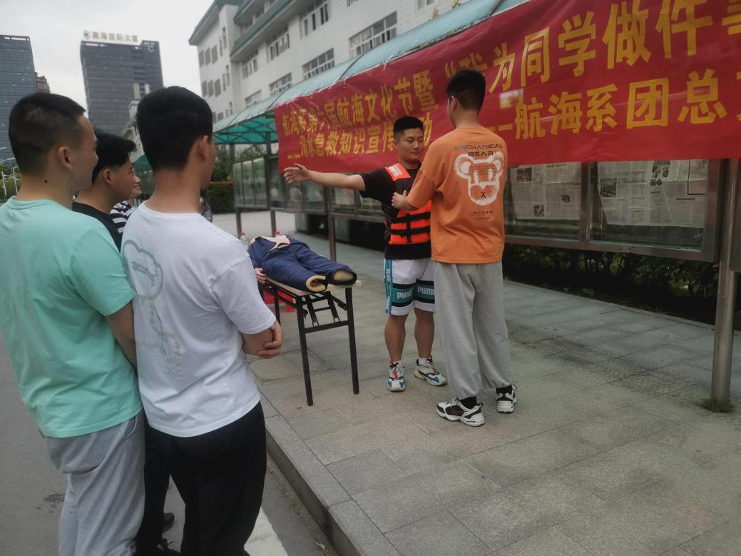5月26日,航海系学生会成员结合自身所学专业知识,在教学楼门口向全校学生普及溺水急救知识。活动过程中,有不少同学前来围观,同学们学习热情高涨,对救捞知识及溺水后自救与求救的方法兴趣较大。航海系学生会成员详细为大家讲解了救生衣的正确穿法、心肺复苏及人工呼吸、溺水后的自救及求救方法。
