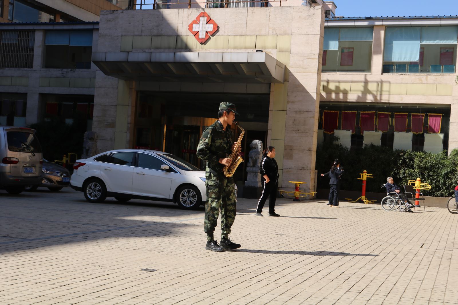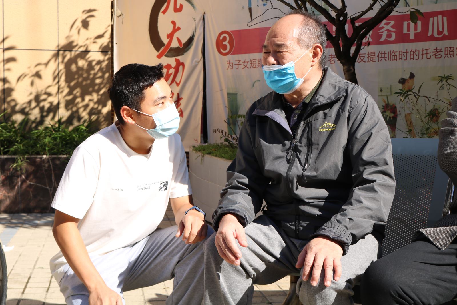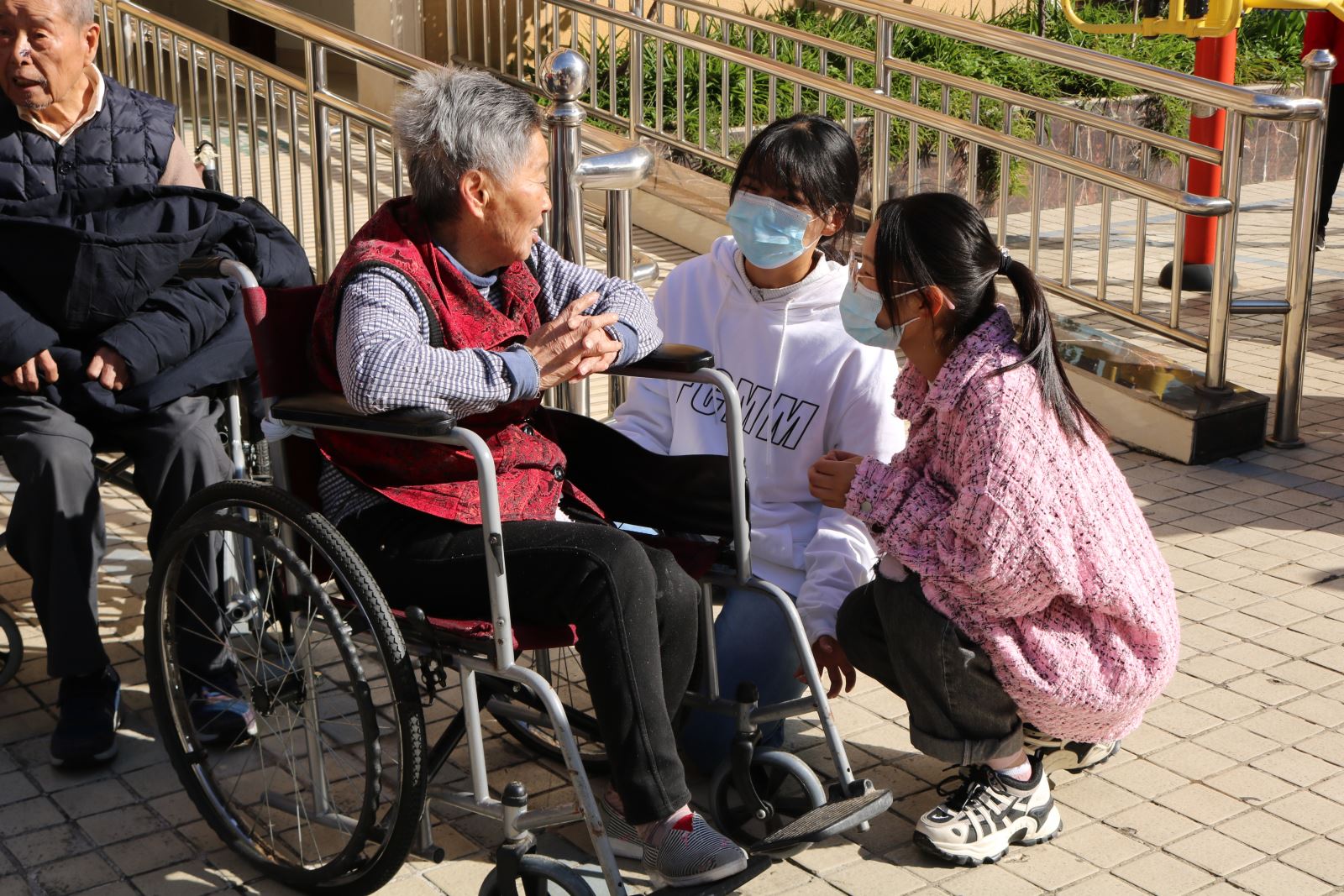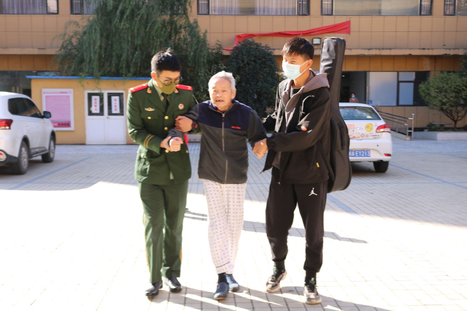 随后,同学们搀扶老人、推着轮椅将老人们带到院子里晒太阳,并将自己的外套给他们盖上。在院子里,同学们主动向老人们表演节目,无论是活泼帅气的街舞,还是散发着青春活力的吉他,亦或是奏响青春的萨克斯,都给在场的老人们带来了一阵阵欢声笑语。听到老人们发自内心由衷的感谢,同学们心头暖暖的,一种久违的温馨和家人的关怀围绕在老人的心中。