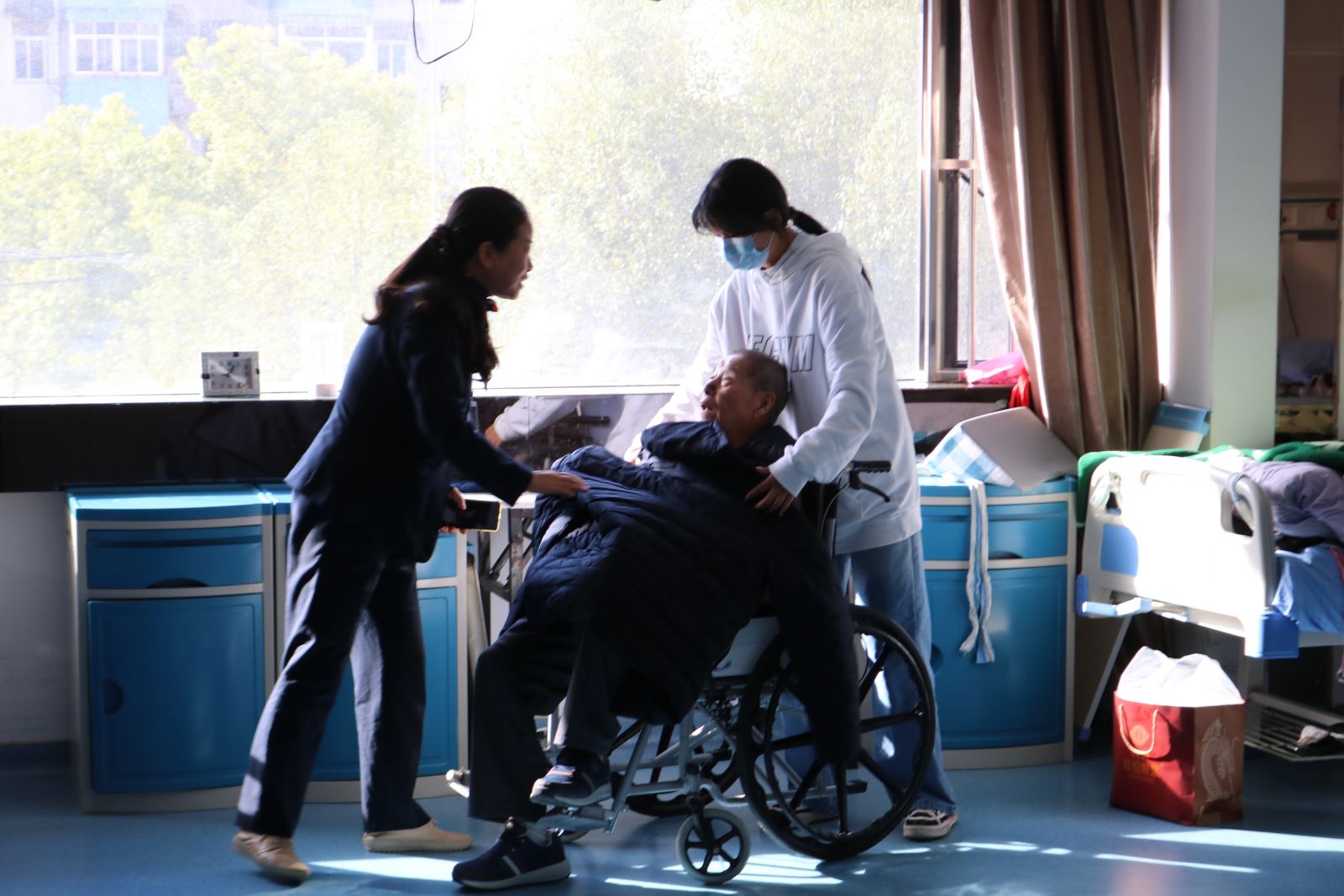 活动现场,航海系学子们积极参与其中,有的和老人聊天,有的给老人整理床铺,帮老人摆东西。同学们将买来的水果和牛奶分发给老人,详细询问了他们的生活起居、身体健康等情况,倾听了老人们的心声,并叮嘱他们保重身体,天冷了要注意保暖御寒。