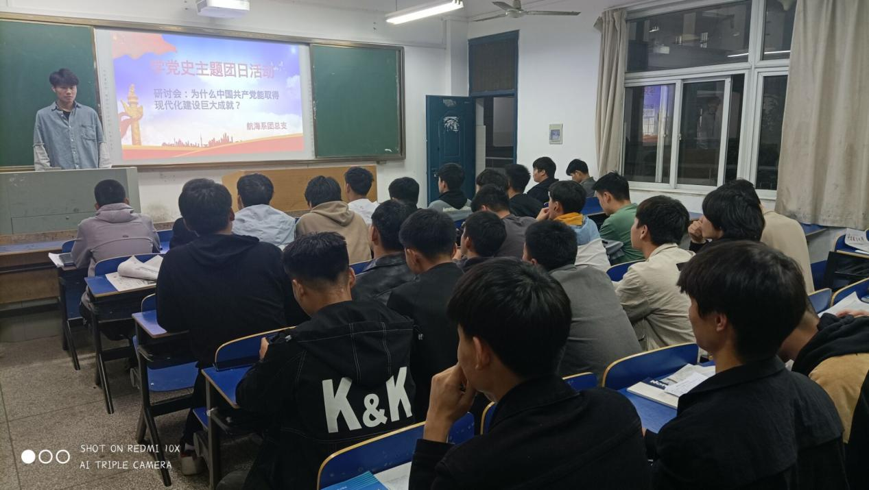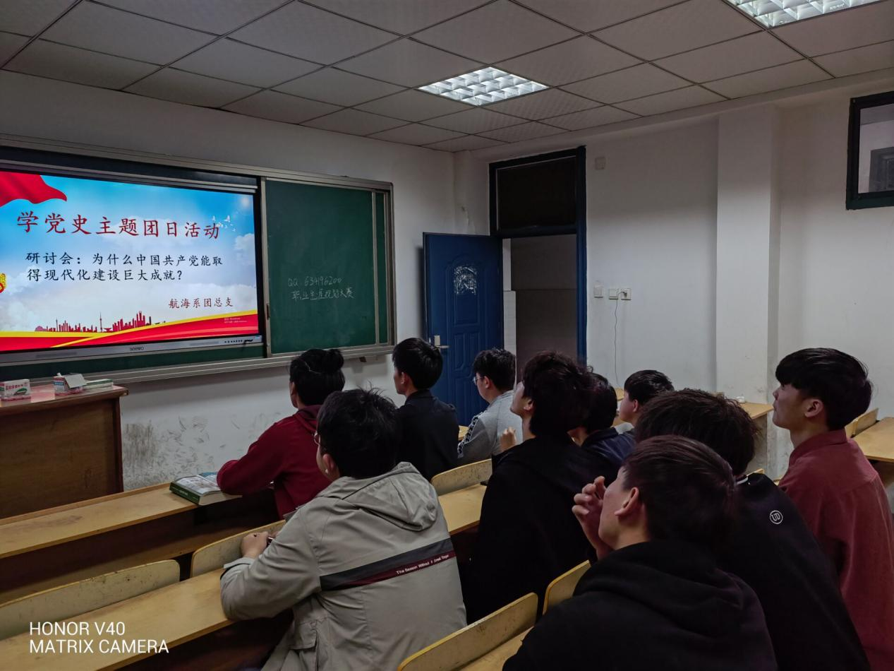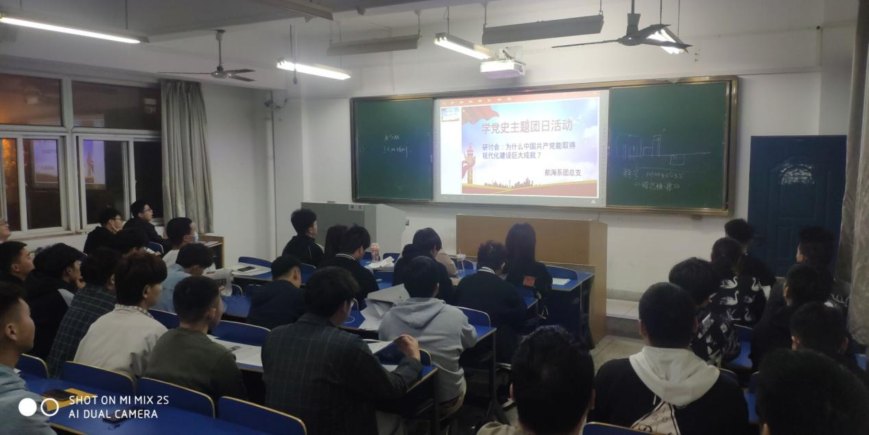 为迎接中国共产党成立100周年,深入开展党史学习教育活动,进一步教育引导共青团员学党史、强信念、跟党走,4月26日航海系各团支部开展主题团日活动,以研讨会形式,探寻“为什么中国共产党能取得现代化建设巨大成就”,让大家带着问题共同学习党史。参与本次主题团日活动的共有10个团支部、355名学生,其中共青团员246人。