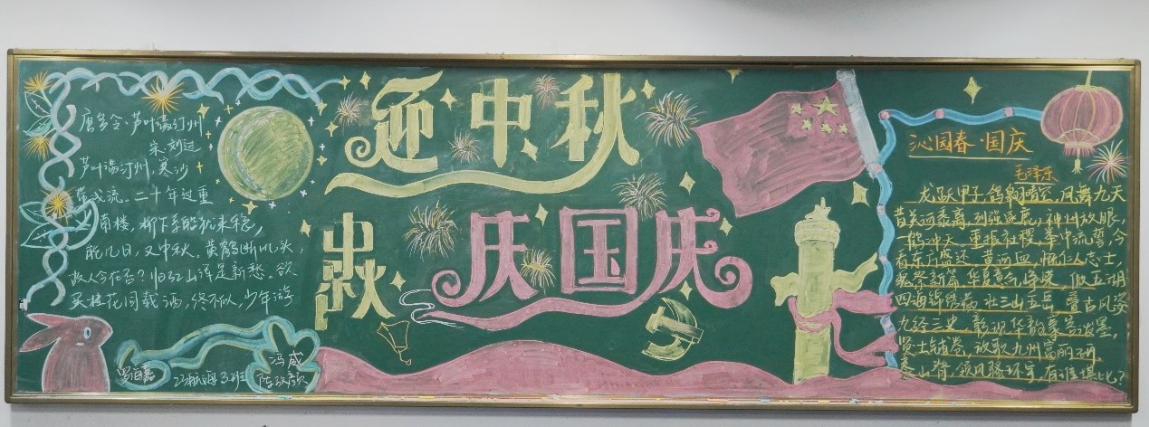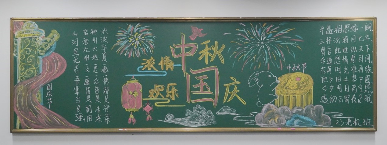 为庆祝中秋国庆双节来临,加强青年爱国主义教育,厚植青年爱国主义情怀,传承中华民族光荣传统,弘扬和培养民族精神,航海系团总支于10月8日举行了以“迎中秋 庆国庆”为主题的黑板报评比活动。