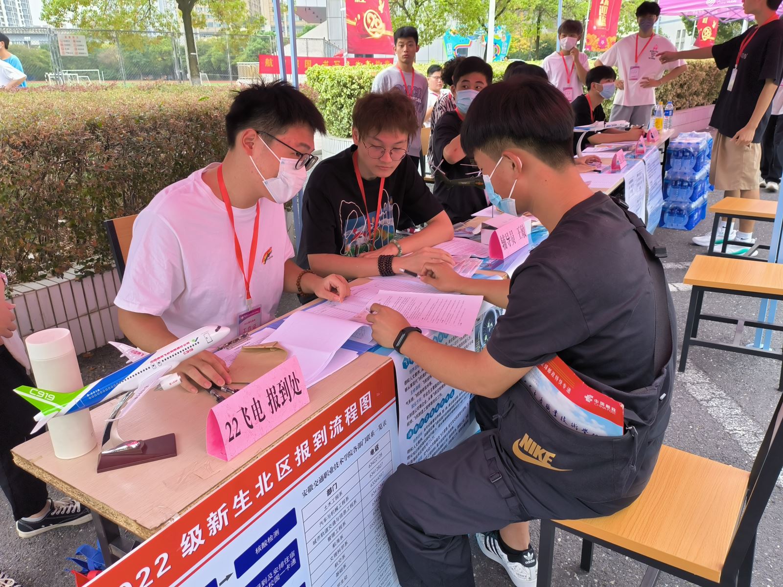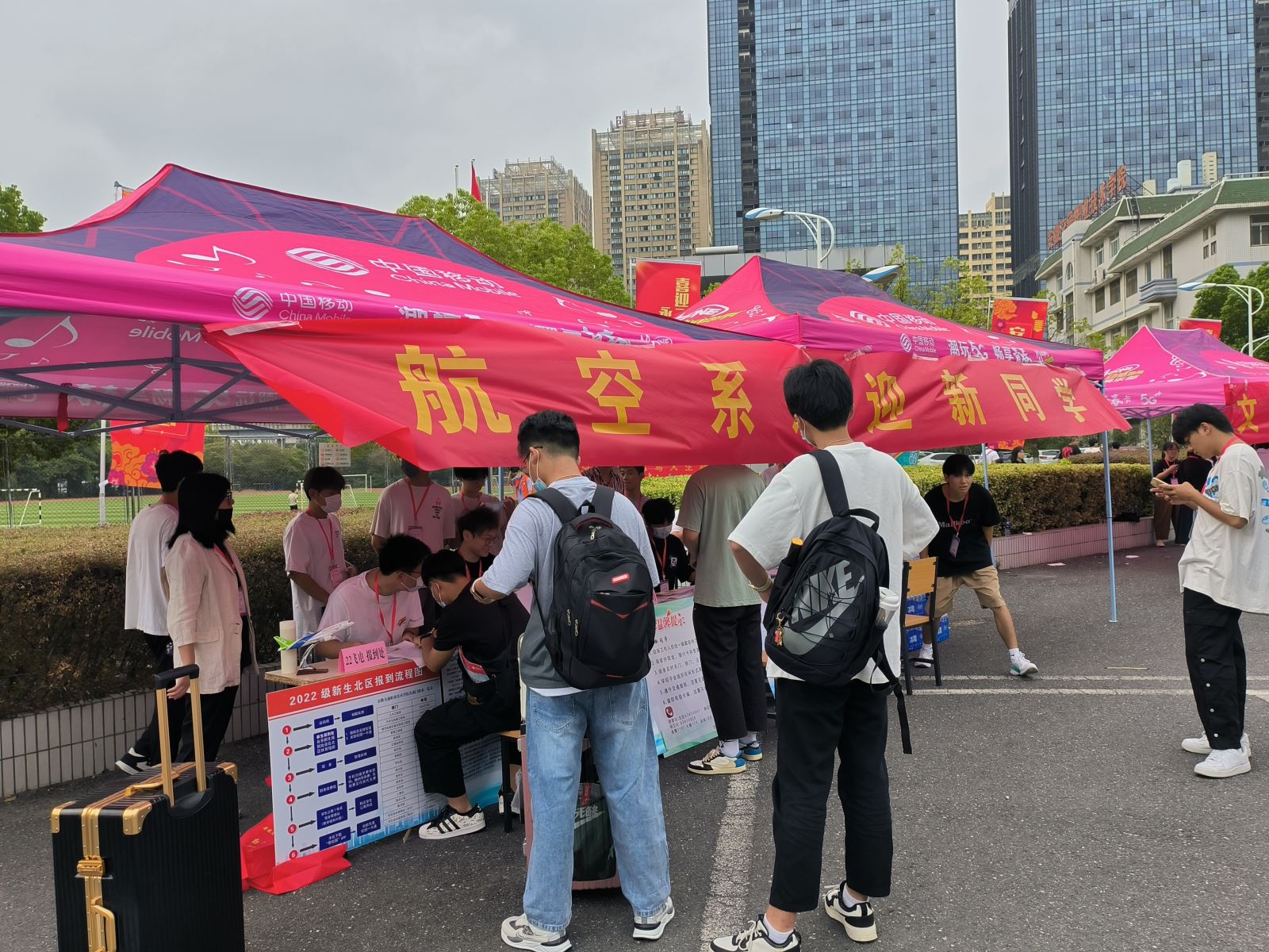 9月14日,校园里朝气蓬勃、热闹非凡,鲜红的迎新标语,有趣的打卡背景墙,整齐排列的迎新棚,络绎不绝来报到的新生,肩抗手提运送各种行李的志愿者,伴随着秋雨的一丝清凉,航空系的迎新工作正有条不紊的进行,2022级67名新生将开启新的人生征程。