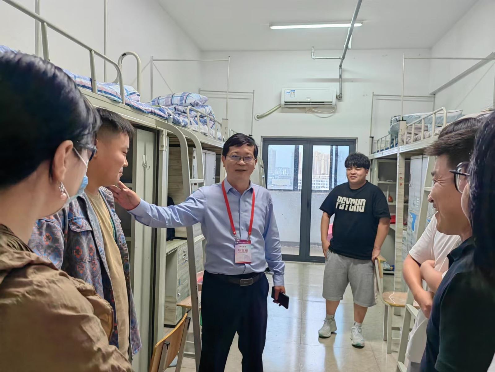 副院长朱文胜带领航空系全体教师深入学生宿舍,与新生进行了亲切交流,鼓励新生积极参加入学教育,上好新生第一课,尽快适应大学生活,同时叮嘱同学们做好防盗防诈骗,保护好人身和财产安全,并配合学校做好常态化疫情防控各项工作。