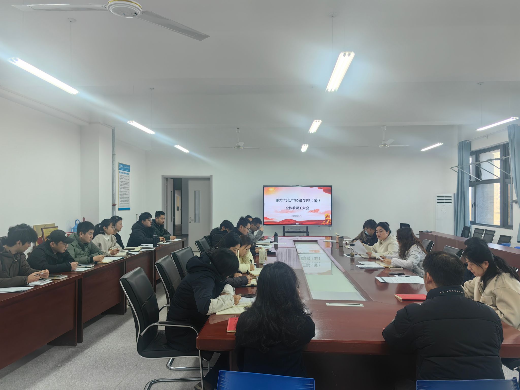 1月16日,航空与低空经济学院(筹)召开全体教职工大会,全面学习上级精神,部署寒假及新学期重点工作。会议由校党委委员、副校长、航空与低空经济学院(筹)院长、党支部书记梁洪波主持,全体教职工参会。