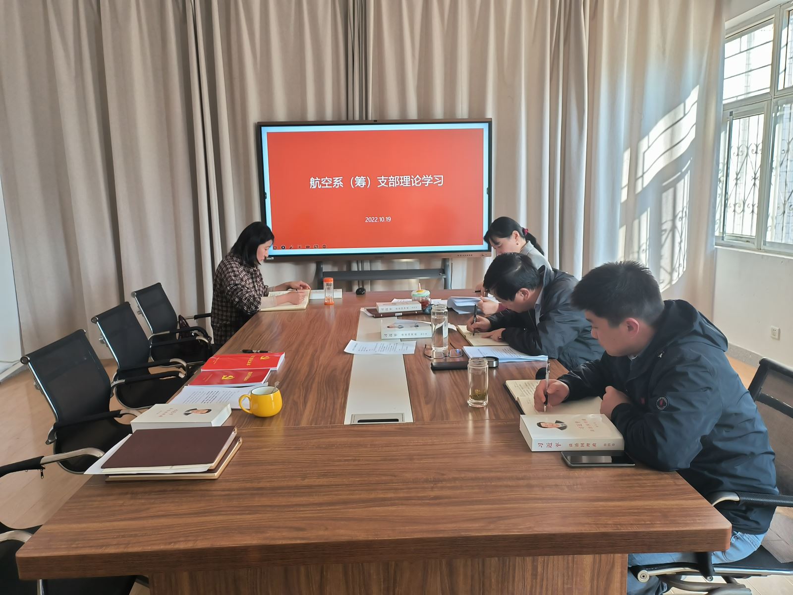 10月19日下午,航空系(筹)党支部在教学楼一楼会议室组织召开理论学习会,专题学习党的二十大精神。学院副院长、系党支部书记朱文胜主持会议并讲话,航空系(筹)党支部全体成员参加会议。
