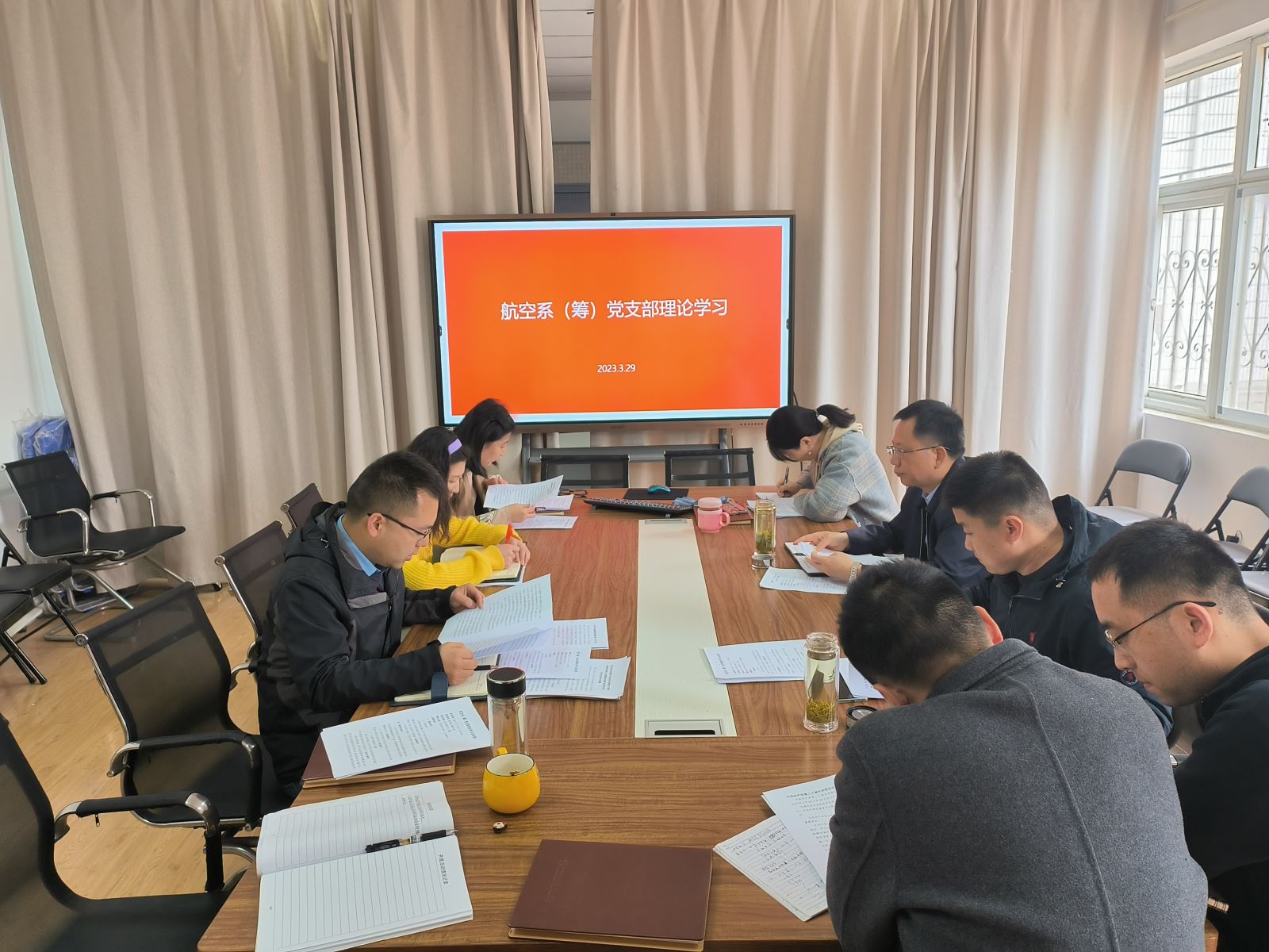 3月29日上午,航空系(筹)党支部组织扩大理论学习,传达贯彻习近平总书记重要讲话精神以及全国两会精神,全体航空系教师参加会议,院党委副书记杨菲铃到会指导,会议由党支部副书记赵婧主持。