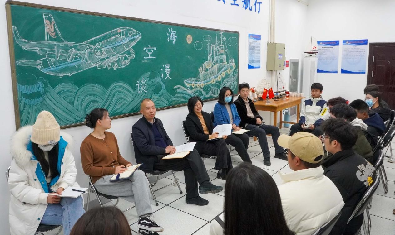 座谈会上,来自航海、航空专业的30余名学生代表畅所欲言,结合自身的学习和生活实际,就“航空专业的职业规划”、“如何高效利用晚自习时间”、“航海专业认知实习”、宿舍卫生、食堂质量等方面提出自己的看法和建议。学生代表们的发言涵盖从学习到生活的各个层面,反映出学生们对学院各项工作的关注和思考。在场教师认真听取、记录同学们的发言,深入浅出、细致耐心地为大家答疑解惑。