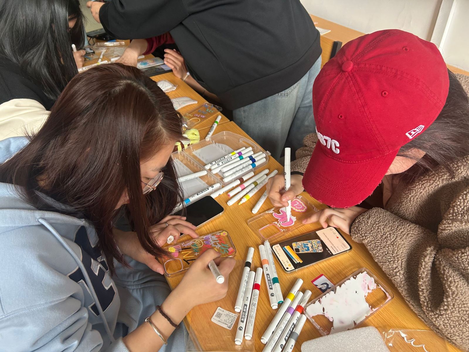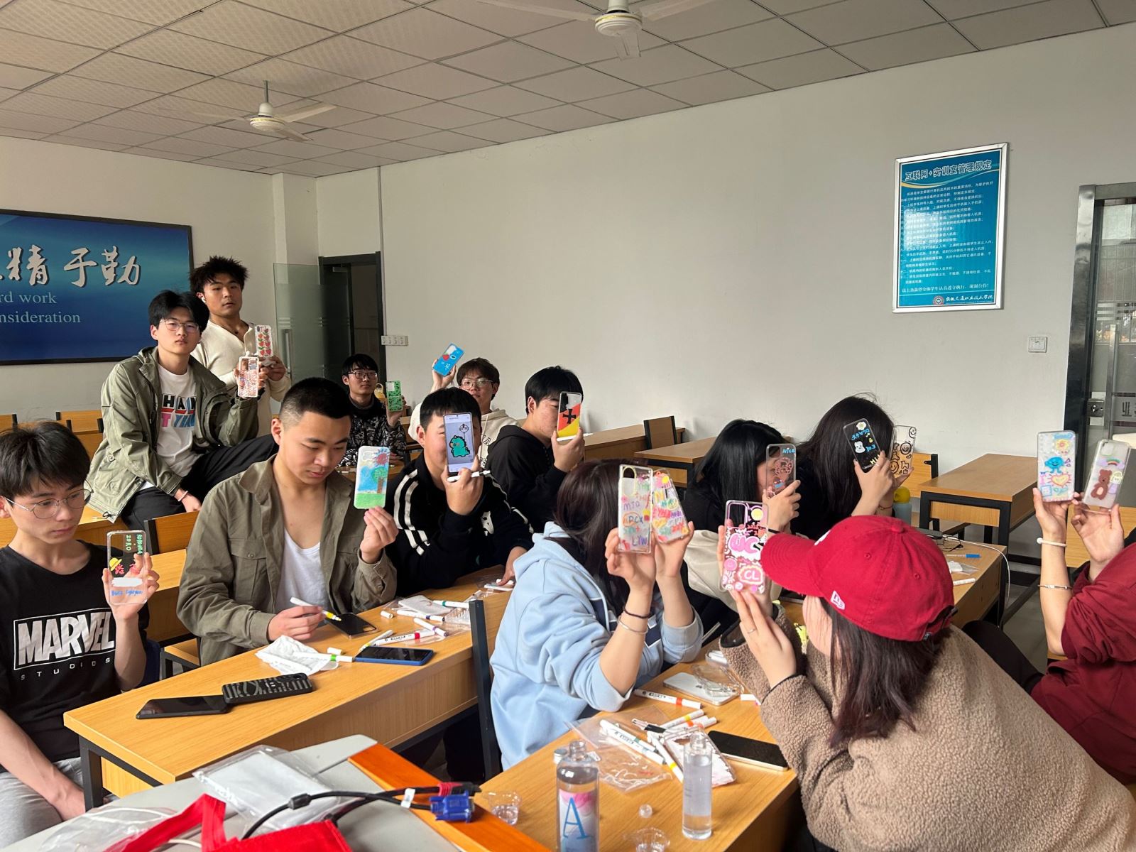 为了丰富同学们的课余活动,促进男女生间的沟通交流,航空系于3月8日中午组织开展了“共携心趣,妙手生花”手机壳DIY活动。活动开始,负责同学向大家进行了简单介绍,用透明手机保护壳作为基础,用各种颜色的丙烯马克笔,发挥自己的想象力在手机壳上涂鸦。大家领取了自己的手机壳,迫不及待地落座,准备为心爱的手机装扮“新衣”。不一会,各种富有创造力的涂鸦展现在手机壳上,大家互相欣赏彼此的作品,同学们表示手机壳DIY活动动手动脑,参与感满满。(供稿 方玥 审核 赵婧)
