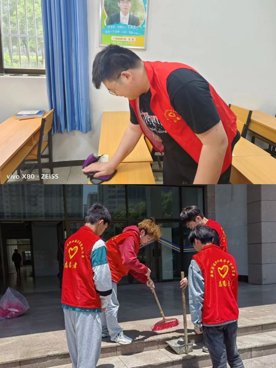 5月9日中午,同学们主动放弃午休时间,在各班班长的带领下分为三组进行义务打扫活动。在劳动过程中,同学们以不怕脏不怕累,坚决不留卫生死角的态度分别对专业实训室、系部会议室和寝室楼道进行卫生清洁和物品整理,大家忙得不亦乐乎!收到了路过学生和老师的赞赏,也收获了劳动的快乐,增强了集体荣誉感。