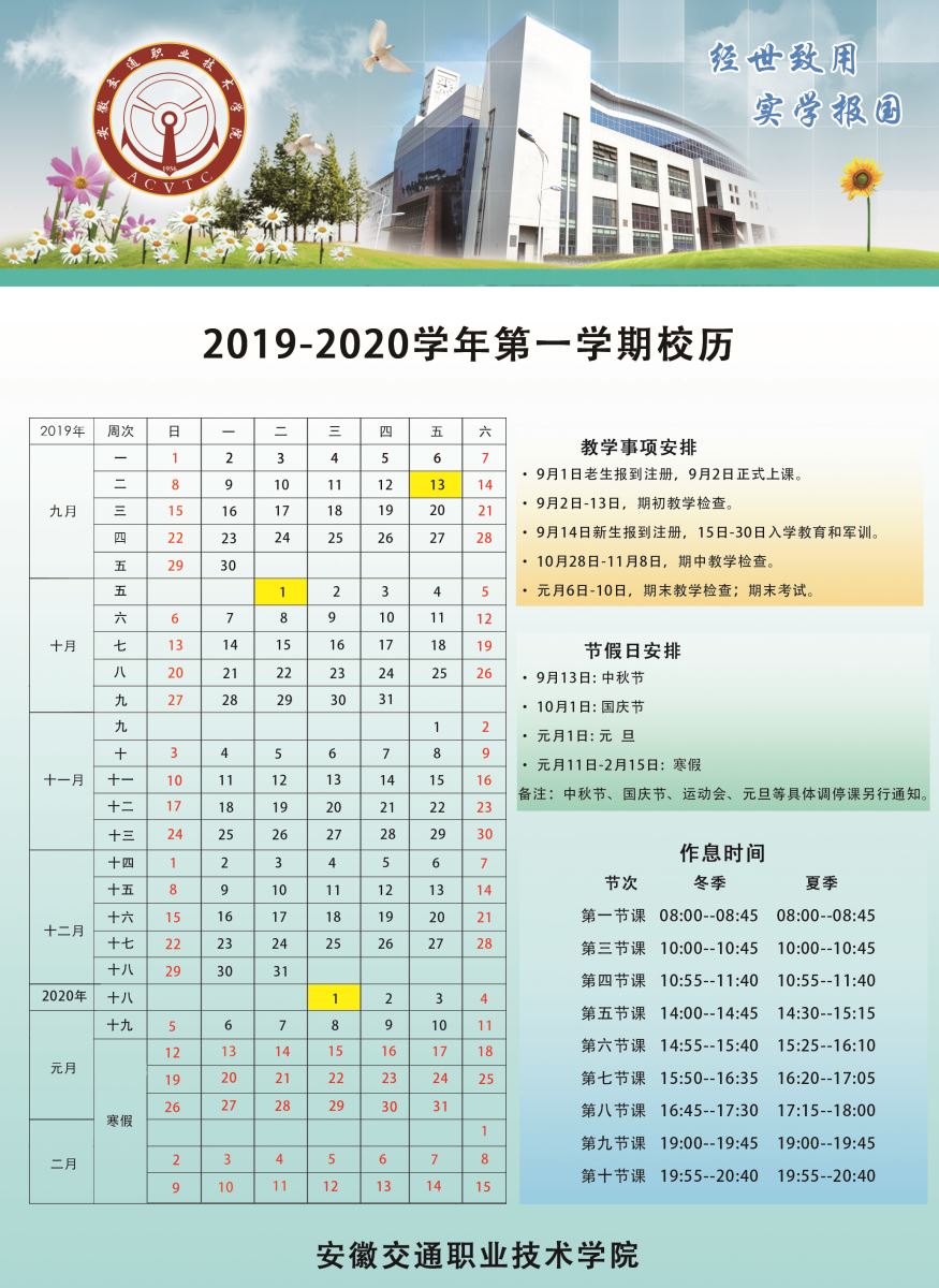 2019-2020学年第一学期校历