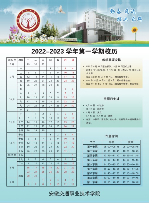 2022-2023学年第一学期校历