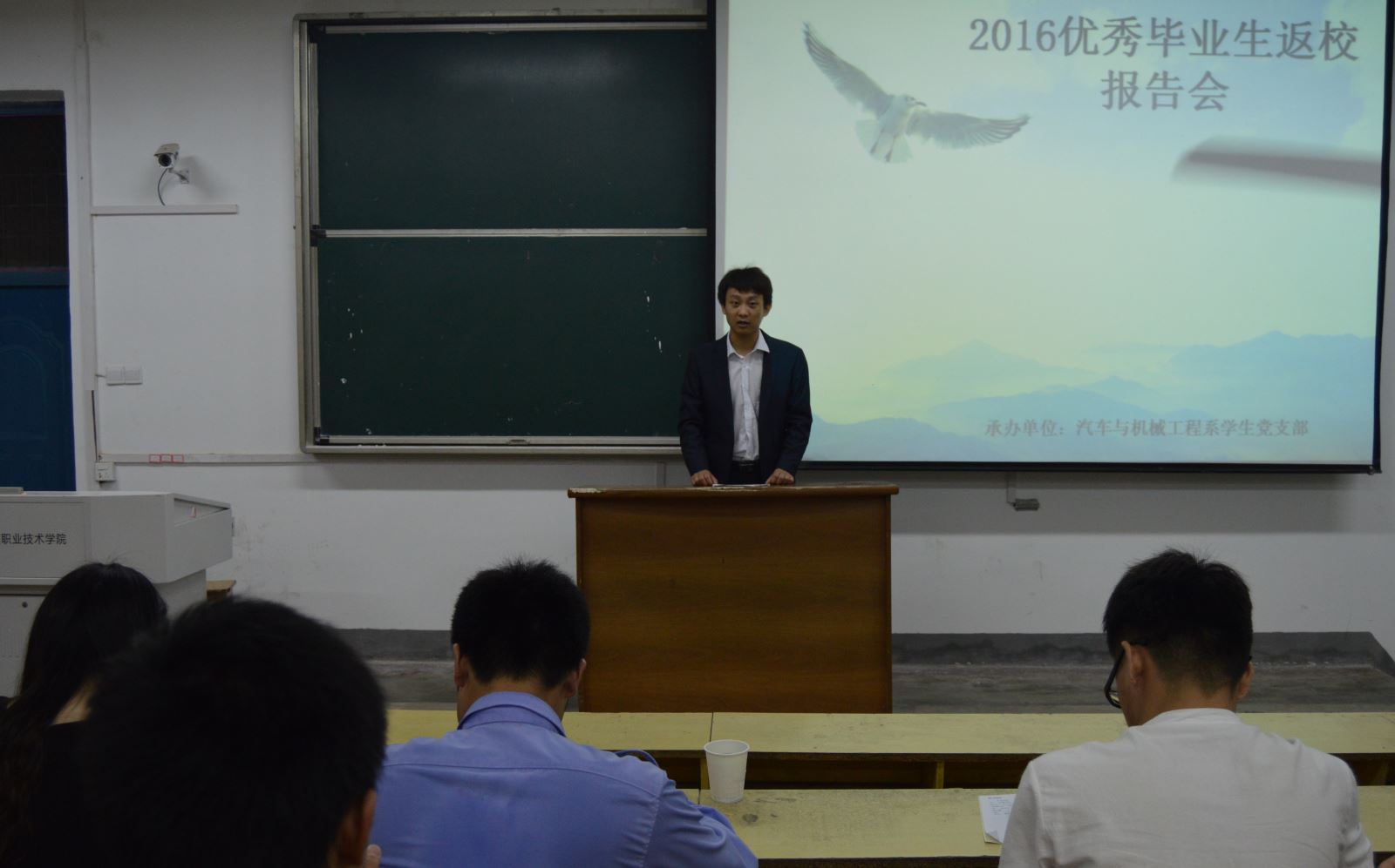为帮助在校生明确学习目标,加强对职业世界的了解,合理规划自己的大学生活,6月22日晚7点,由汽车与机械工程系学生党支部主办的2016年优秀毕业生报告会在南教西阶101教室举行。全系学生党员、入党积极分子和部分学生代表聆听了报告会。