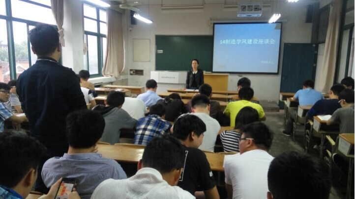 学风是学生思想道德品质、学习精神与综合素质的重要体现,是学生成长的基础和前提,是凝聚在教与学过程中的精神动力、态度作风、方法措施,也是学生健康成长的基石。本次班会的目的在于调动同学们自主学习的积极性,提高自律意识,进一步端正学习态度,浓厚班级学习氛围,塑造优良的班风学风。在各班辅导员老师的带领下,同学们围绕班级学风建设迅速展开热烈的讨论,15机电班的班委们分别从思想、学习、生活以及班级活动等方面对本班各项工作进行了总结,指出了存在的问题和不足,做了自我检讨,并提出了后期班级学风建设、制度建设等方面的意见和建议。14电子班则针对如何端正自身学习态度,提高学习主动性进行了自由讨论。班级同学共同参与班级学风建设,吉莉同学说:“在学校已经生活学习了近两年,对于即将毕业的我们,更要清楚自己的责任,珍惜时光,提高自身素质能力,更好面临就业,不要等到毕业后,发现自己什么没学到,后悔都来不及”。