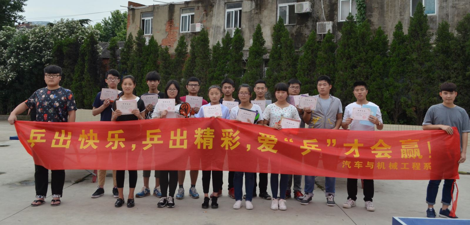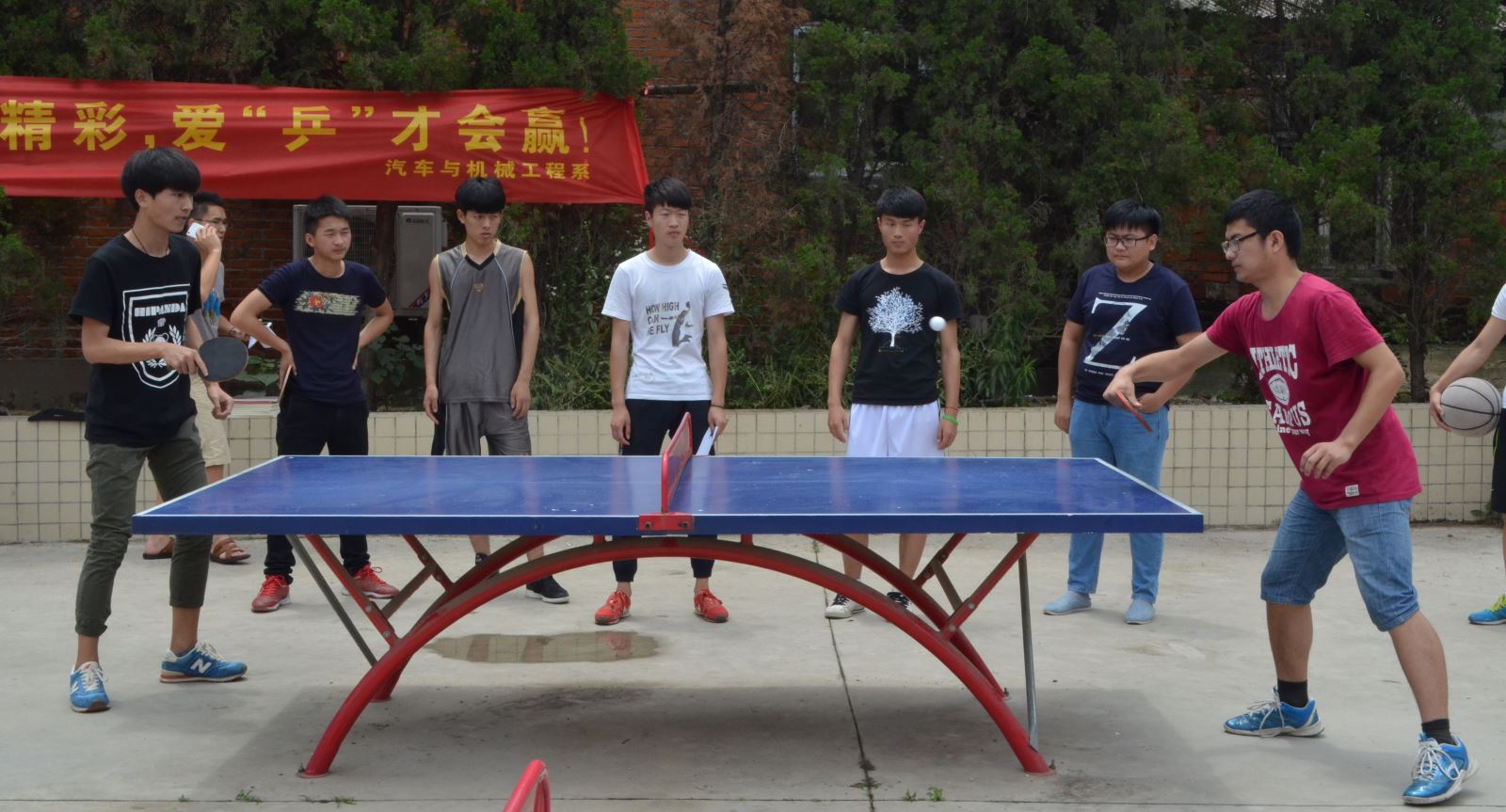 6月2日中午,汽车与机械工程系体育部乒乓球联谊赛在南区操场举行, 经过选拔共有16名同学参加比赛,其中男生10人,女生6人。