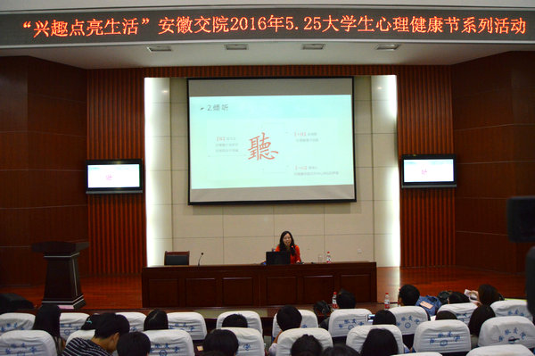 5月26日晚6点,学生处心理健康教育中心特邀安徽建筑大学郑敏教授在多功能报告厅,为2015级各班班长、心理委员、寝室长、院系学生组织干部代表作“积极心理,助力成长”心理讲座,约400人到场聆听。