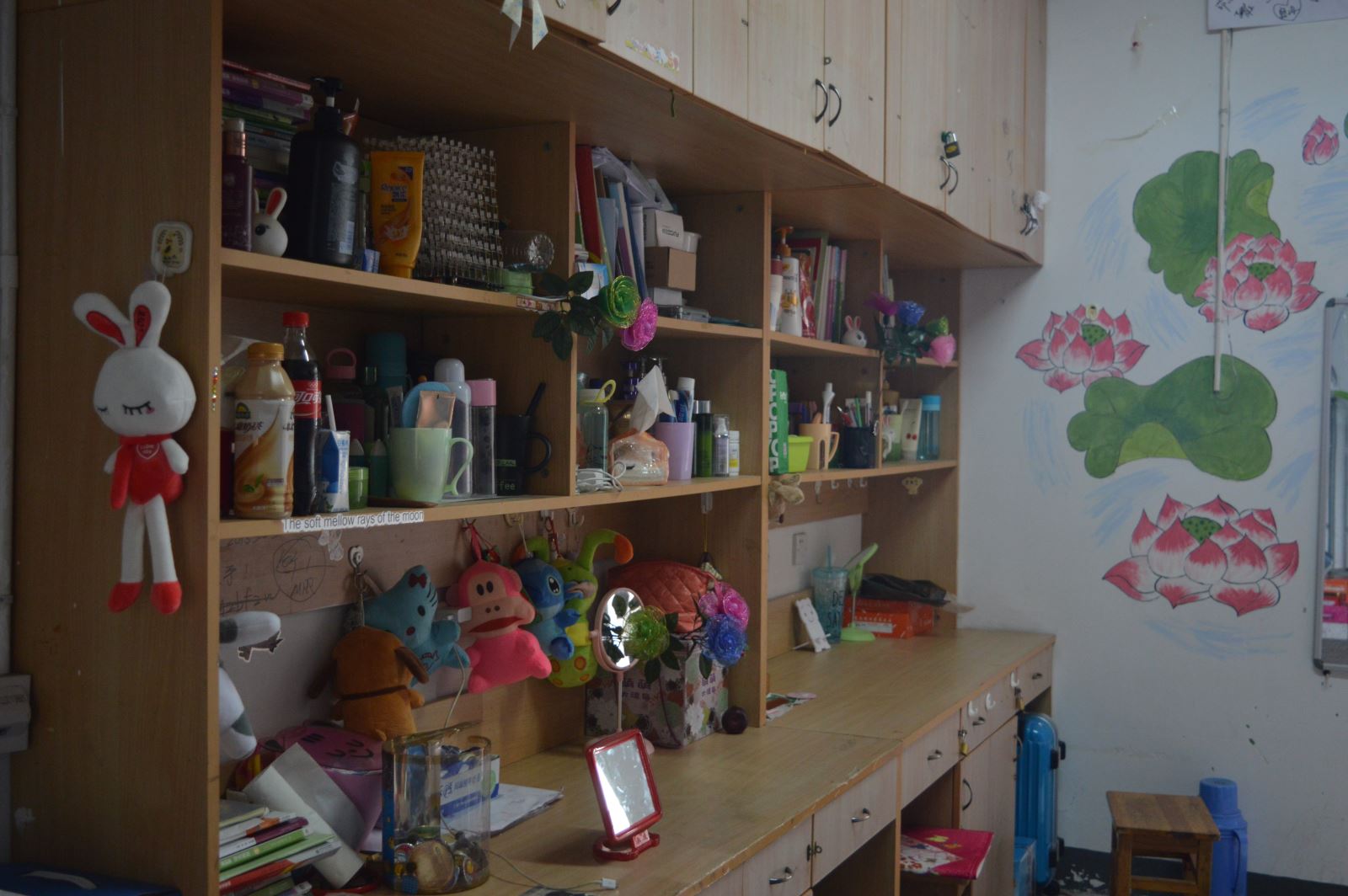 女寝4栋1单元501寝室,别称“苏叶居”,推开门色彩缤纷的气球映入眼帘给人一种轻盈跳脱的感觉,缠绕着墙角和床上扶手的绿叶更是点睛之笔。男寝6栋302寝室,名为“腾龙阁”。细心的男生用一幅巨大的绘画装饰了整面墙,尤其是门头处用毛笔书写的“奋斗”二字,与寝室名字遥相呼应。学子们以他们的聪明才智让各自的寝室焕然一新,新的格局、新的装饰不仅意味寝室新的开始,也意味着同学们生活和学习的新开始。寝室装扮不仅弘扬了宿舍文化,同时也丰富了同学们的业余生活,促进了宿友关系的和谐发展,可谓一举多得。(记者团 文/黄伟丽 张露露 图/赵焰 陈晓峰)