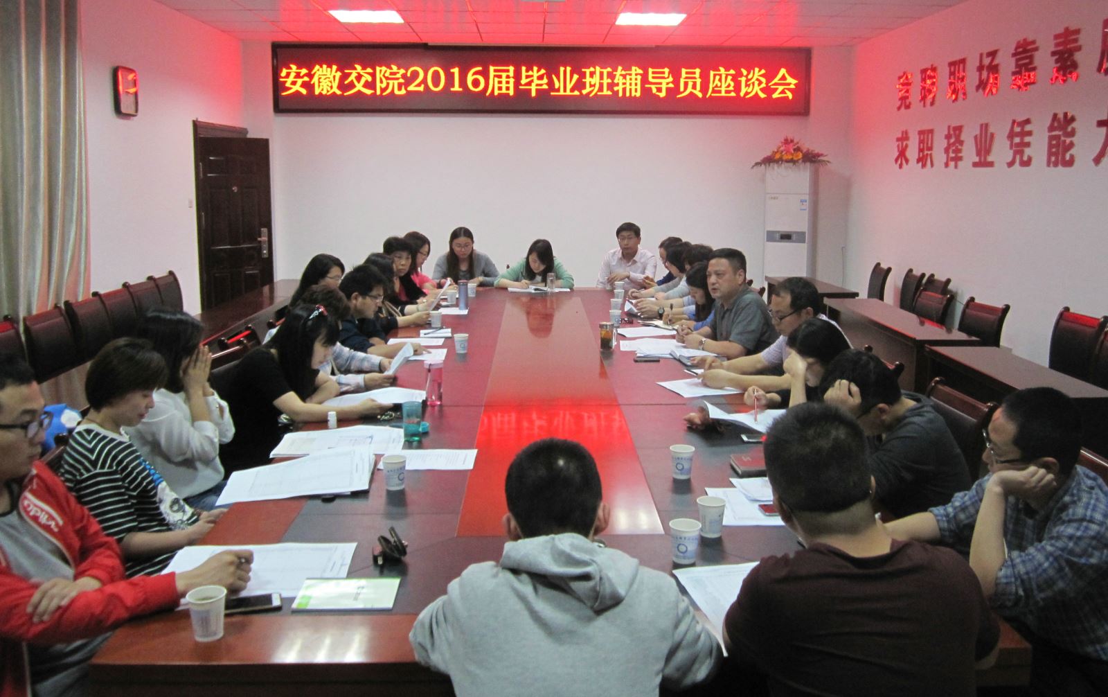 为全面了解米兰2016届毕业生就业状况,进一步推动和促进米兰2016届毕业生就业创业工作,贯彻落实省教育厅有关毕业生就业创业工作会议精神,5月17日下午,院学生处就业创业指导中心在学生处会议室组织召开了全院2016届毕业班辅导员座谈会。院就业创业指导中心全体人员、各系毕业班辅导员、各系具体从事就业创业工作的专职人员参加了座谈会。