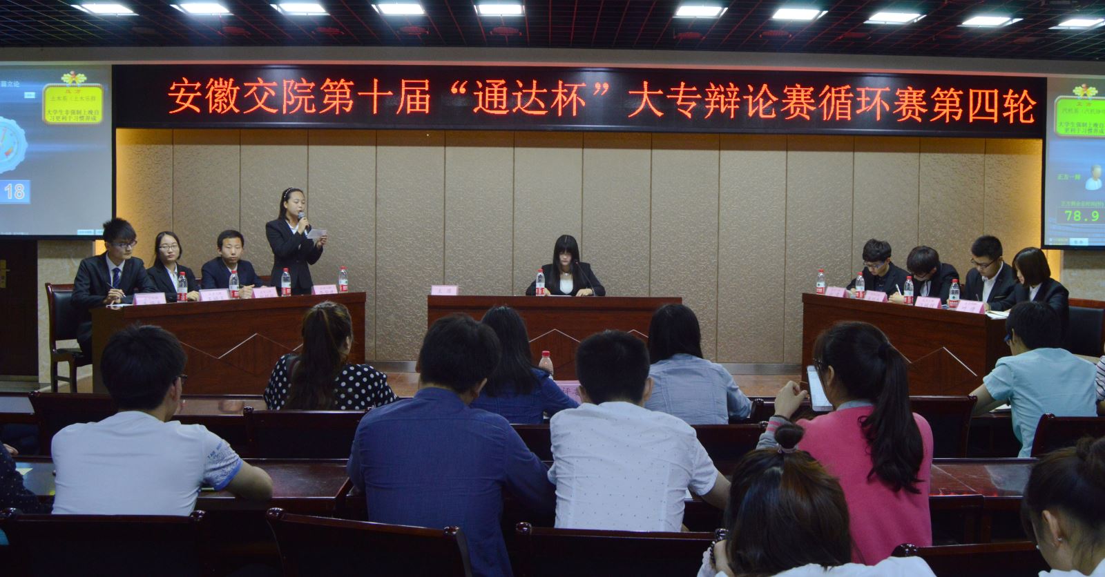 5月18日晚7点,第十届“通达杯”大专辩论赛第四场第一轮与第二轮在学生活动中心举行。
