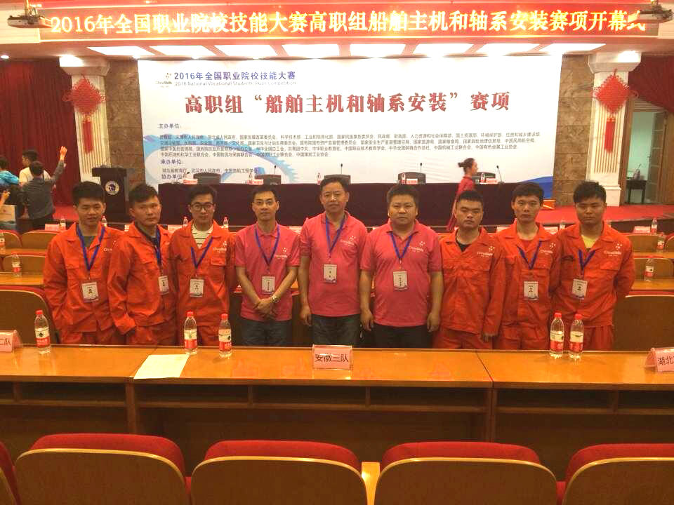 2016年全国高职院校“船舶主机和轴系安装”技能大赛今天上午在武汉船舶职业技术学院正式拉开帷幕,赛项得到教育部职教司和湖北省教育厅的高度重视,共有十二个省份的十九个代表队参赛。有三支队伍代表队安徽省参赛,其中米兰两队,六安国防职业学院一队。